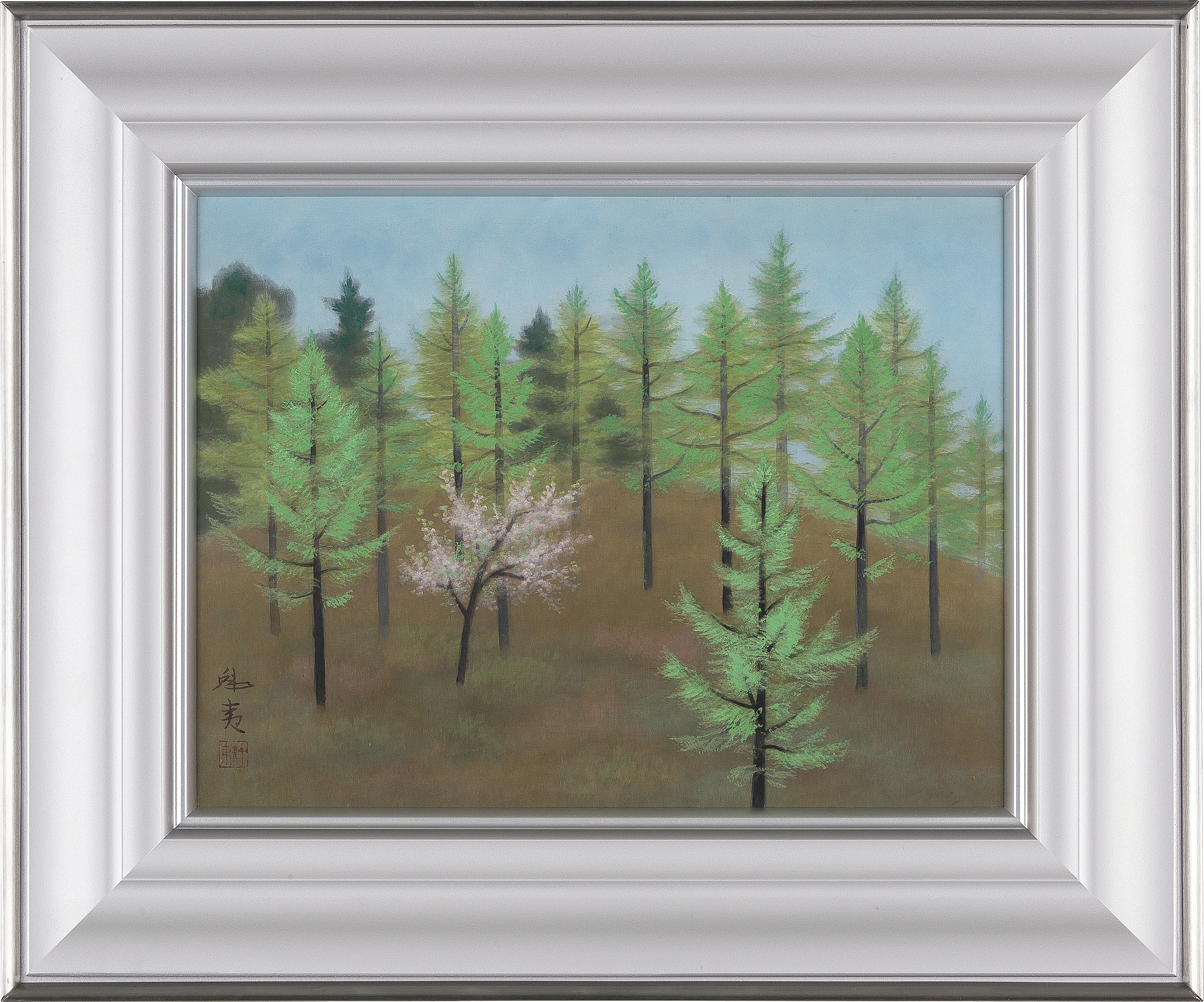 1953年 絹本・彩色 32×42.2cm 画面左下に落款と印 共シール 共箱 額付