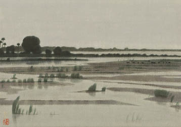 1968年 紙本・彩色 45.8×65.5cm(15号) 画面左下に落款と印 共シール 額付