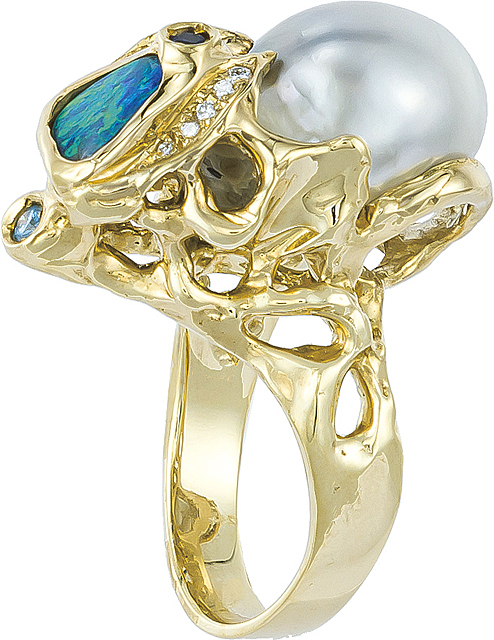 【Lot0579】 パール マルチカラーストーン リング