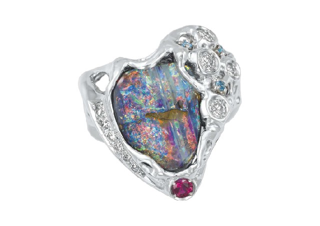 ボルダーオパール マルチカラーストーン リング