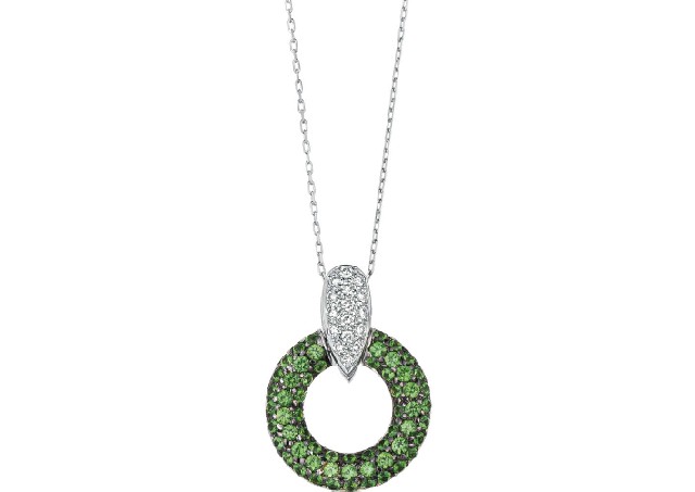 グリーングロッシュラーガーネット ダイア ペンダント
