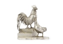 【Lot0917】 銀製 置物:春の鶏