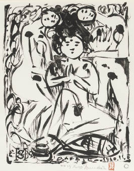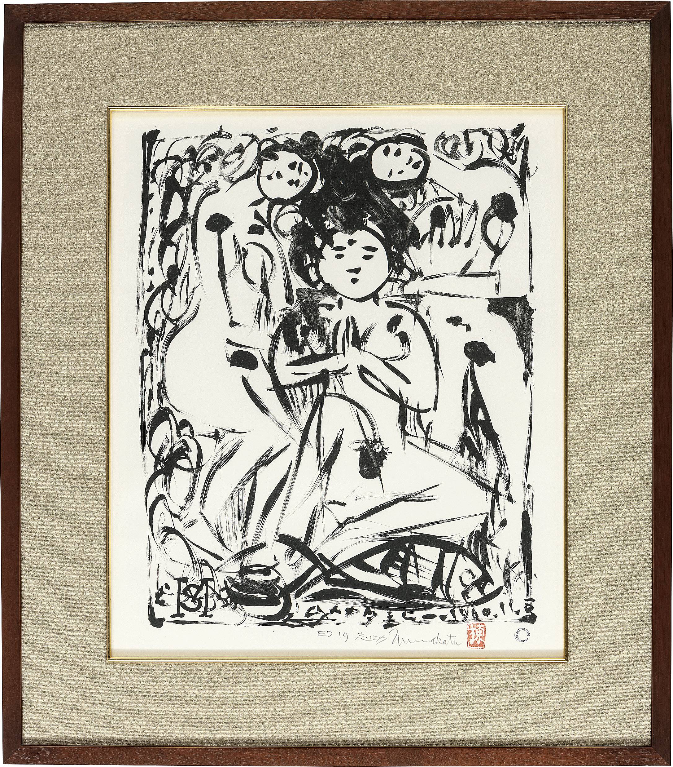 講談社8巻No.2 1959年 リトグラフ 47.5×38cm サインと印有 マージンに「ED19」の記述 シート数ヶ所にわずかな波打ち 版面に薄いヤケ マージン及び裏面全体にヤケ、数ヶ所にシミ、シワ 額付