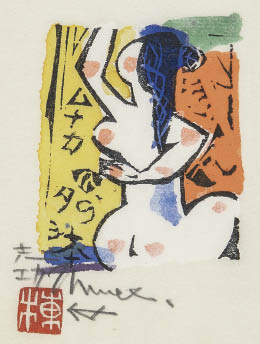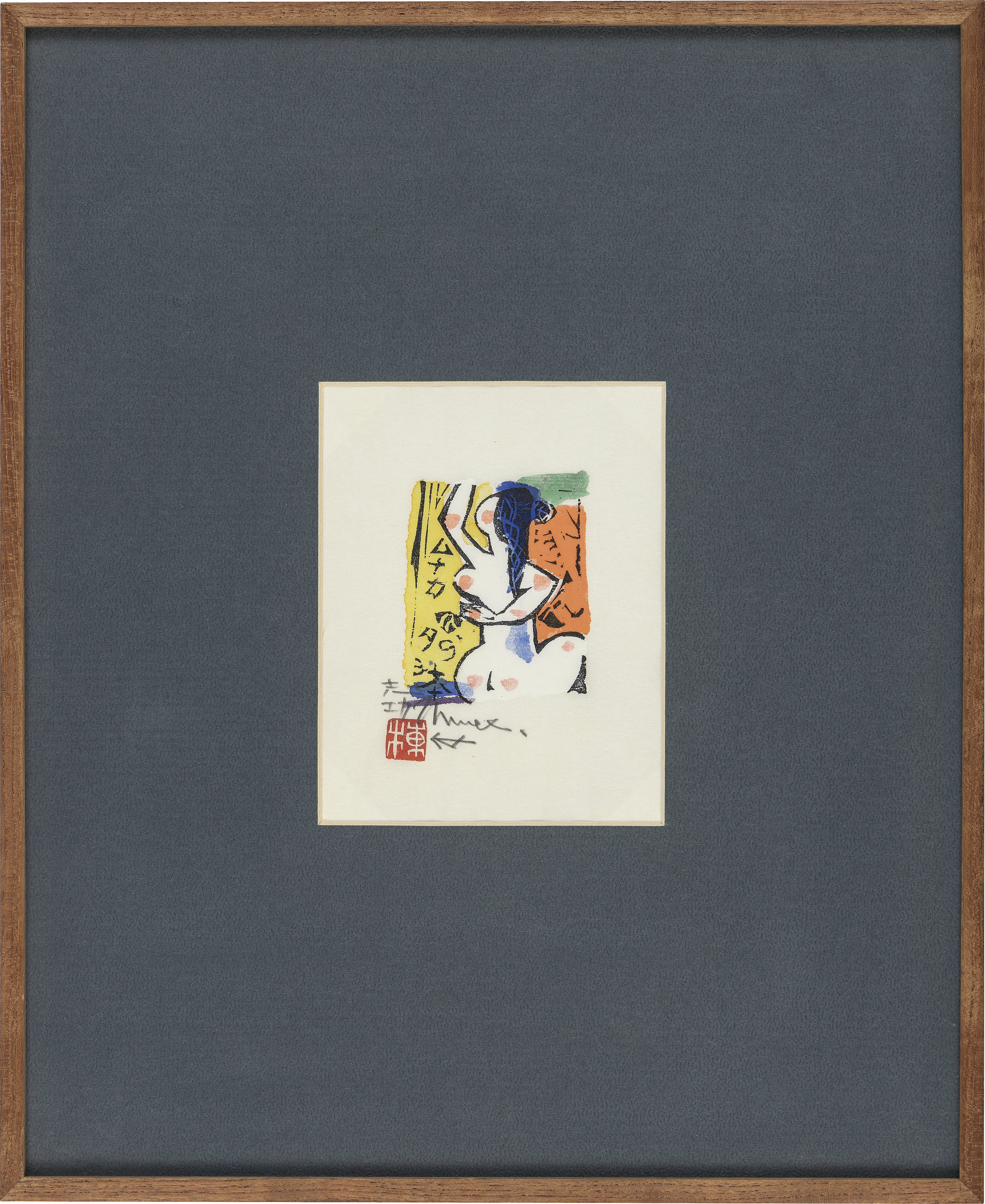 講談社7巻No.136 1960年 板画に裏手彩 8×6cm サインと印有 シートサイズ 17.5×13.7cm シート全体に薄いヤケ マージン及び裏面縁沿い数ヶ所にシミ 裏面縁沿い数ヶ所にテープ貼付 額付