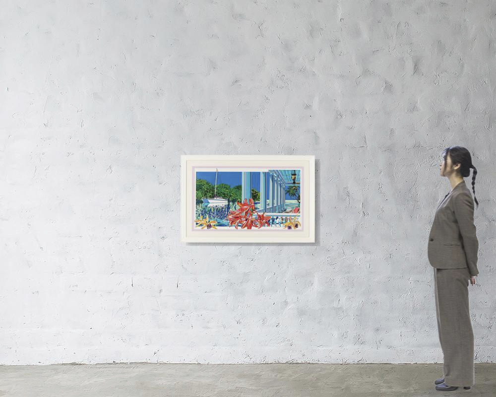 パントンオーバーレイ技法(カットフィルムシート) 65.7×109(紙)cm サイン有 画面全体に薄いヤケ、数ヶ所にシミ、わずかなシワ、わずかなコスレ 額付