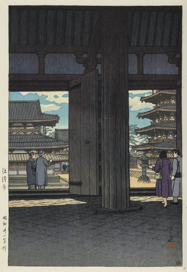 木版 36.3×24.3cm 落款と印共に版上 版面に「ワタナベ」の印 マージンカット シート全体に薄いヤケ マージン2ヶ所にピンホール 裏面縁沿い2ヶ所に紙の剥し跡