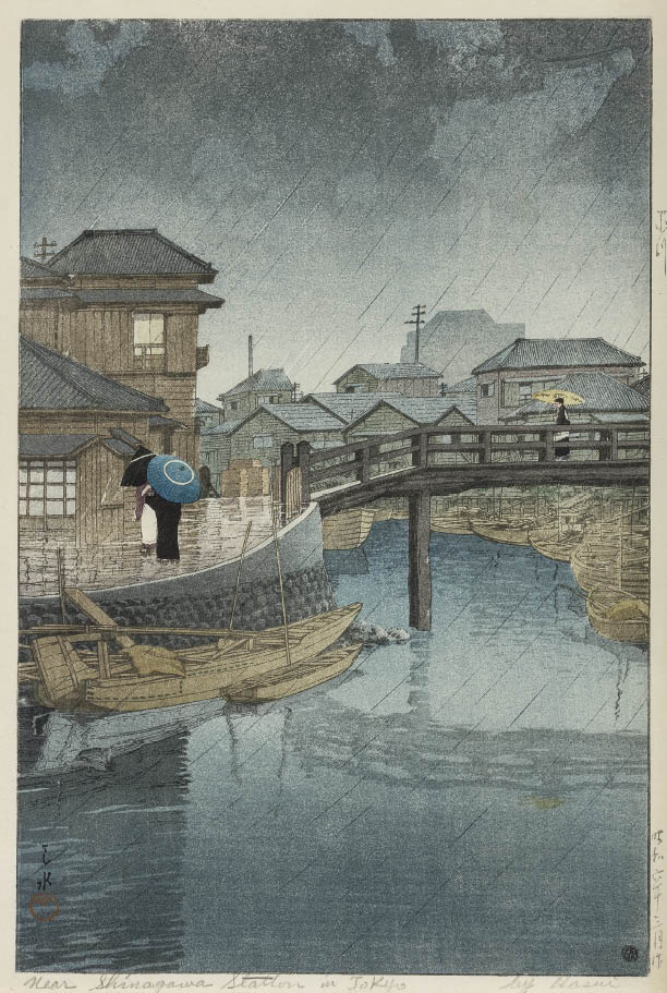 木版 36.3×24cm 落款と印共に版上 シートサイズ 38.3×26.1cm 版面に「ワタナベ」の印 シート全体に薄いヤケ、数ヶ所にシミ