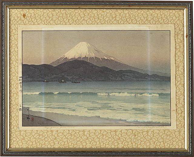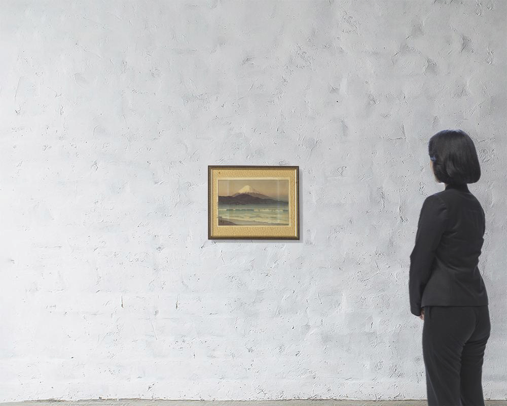 阿部出版No.206 1935年 木版 24.5×37.8cm サインと印有 マージンに「自摺」スタンプ シート全体にヤケ、所々にシミ、数ヶ所にシワ 版面2ヶ所に小さな虫食い マージン隅2ヶ所にピンホール 額付