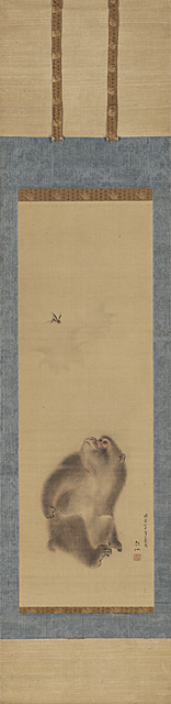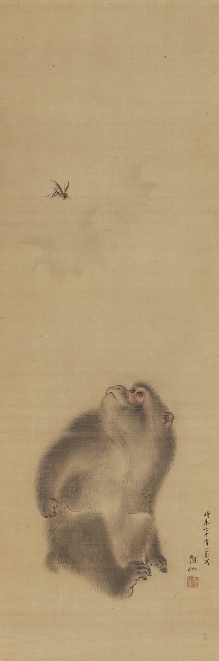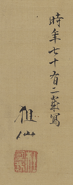 絹本・彩色 101.4×33.9cm 落款と印有 軸装 画面全体にヤケ、数ヶ所にシミ、シワ