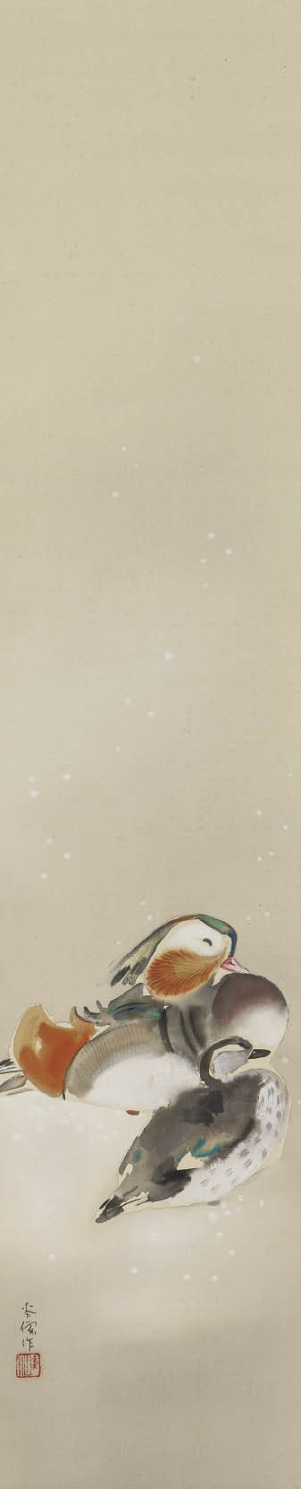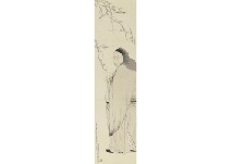 辛酉(1921年) 絹本・彩色 129.3×27.3cm 落款と印有 軸装 画面全体に薄いヤケ、所々にシミ、数ヶ所にシワ、剥落 共箱