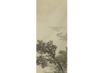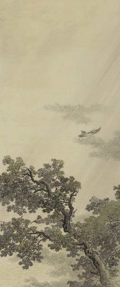 乙卯(1915年) 絹本・彩色 117.7×50.2cm 落款と印有 軸装 画面全体に薄いヤケ、所々にシミ 共箱