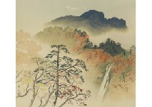 絹本・彩色 42.5×49.7cm 落款と印有 軸装 画面全体に薄いヤケ、数ヶ所にシミ、1ヶ所に小さな剥落 共箱