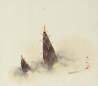 紙本・彩色 41.2×46.4cm 落款と印有 軸装 画面全体に薄いヤケ、数ヶ所にシミ 共箱