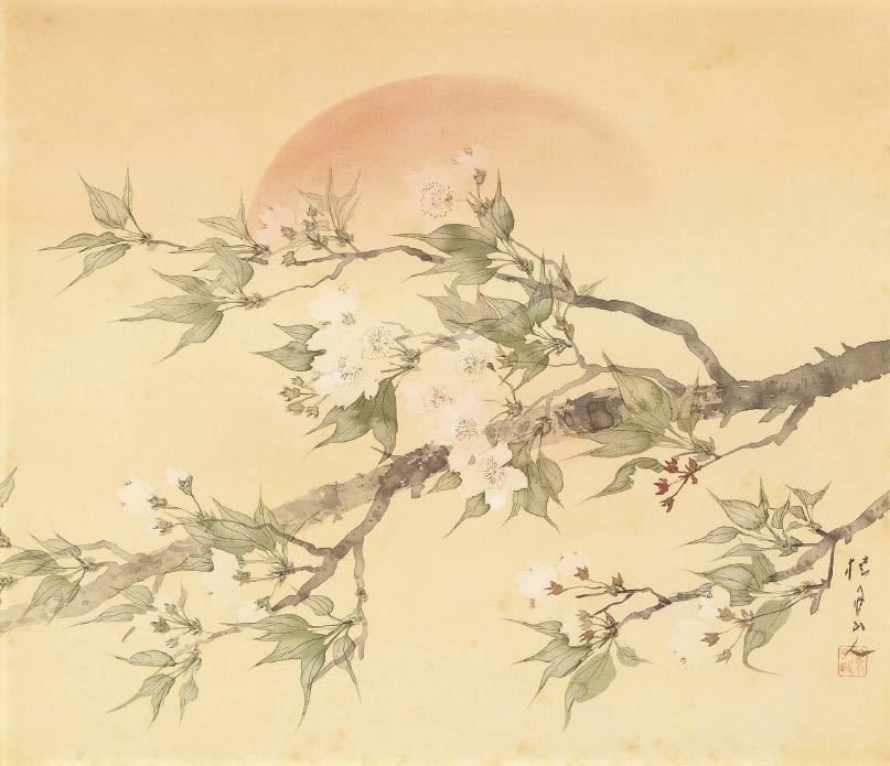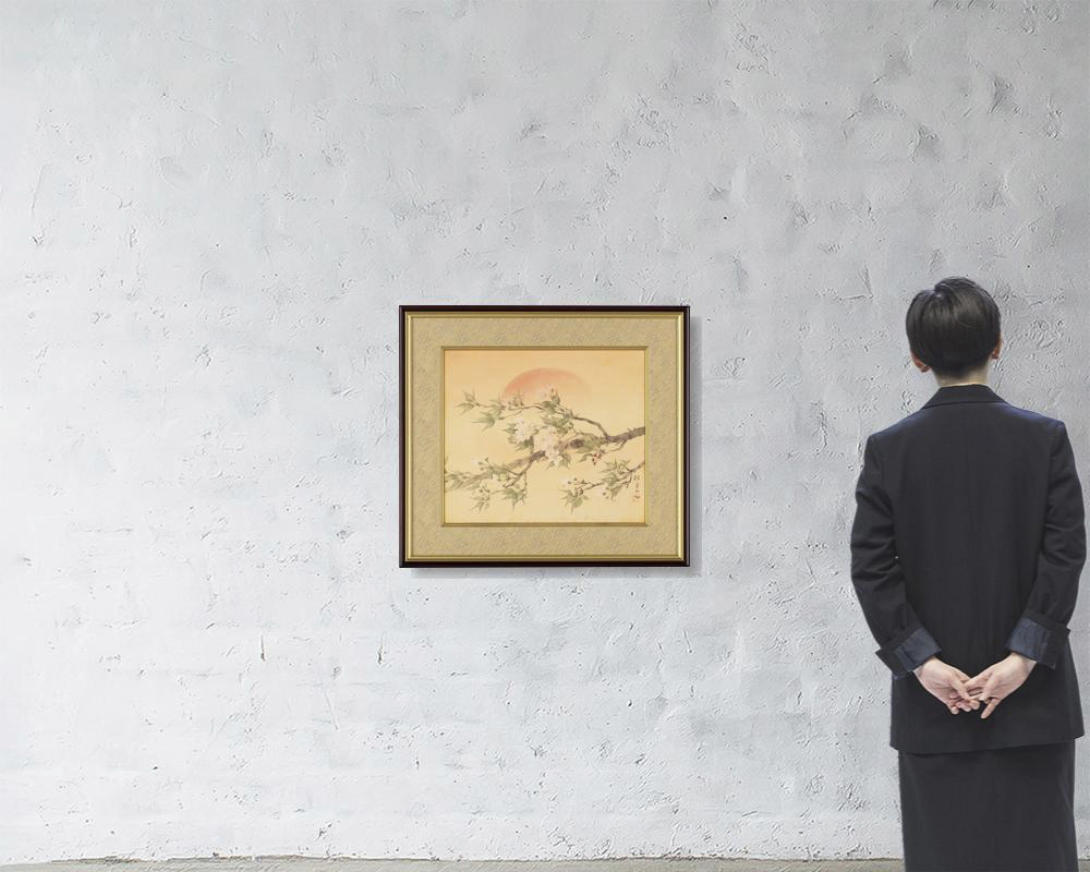 絹本・彩色 43.5×51cm 落款と印有 画面全体に薄いヤケ、数ヶ所にシミ 額付