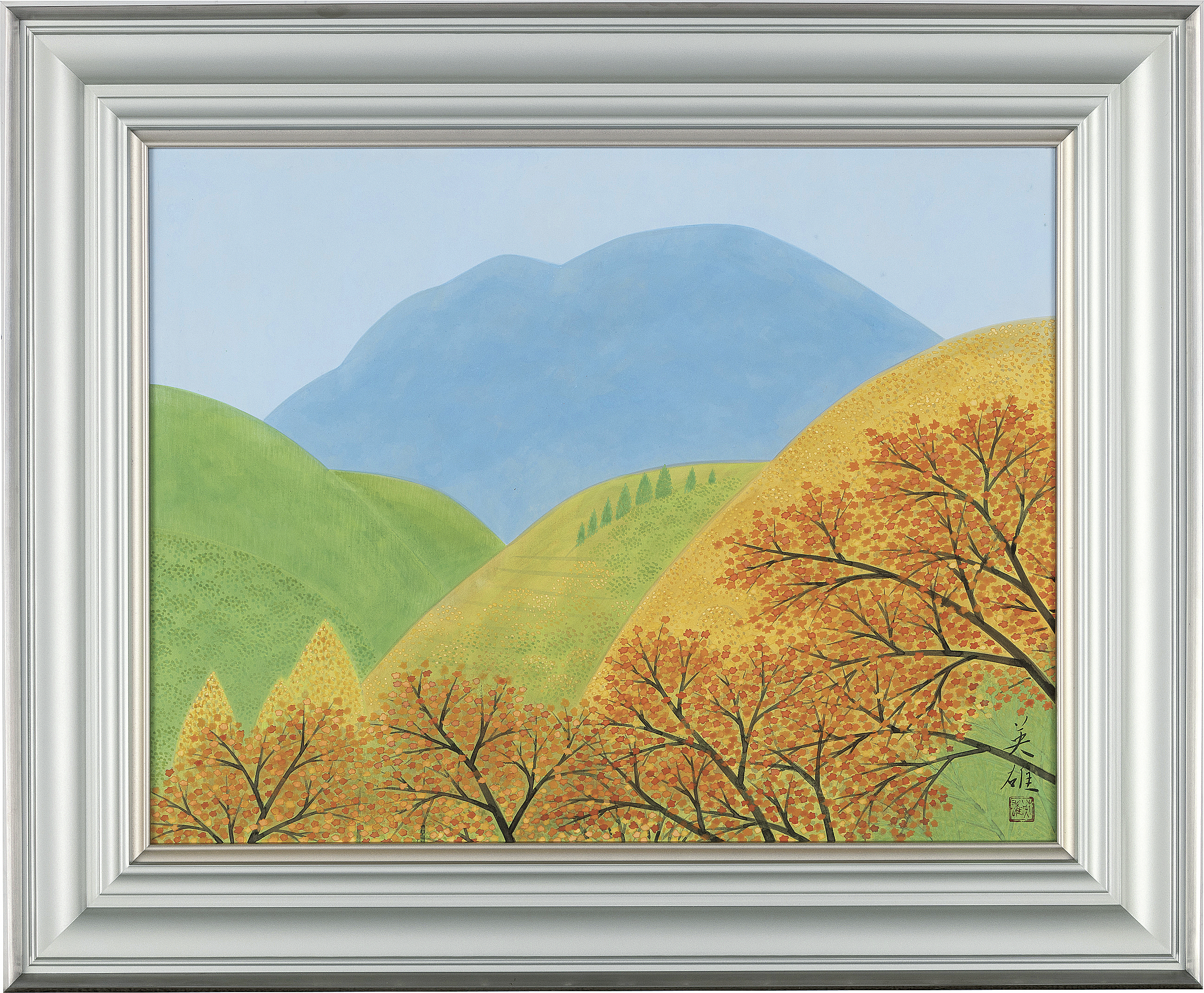 紙本・彩色 15号 落款と印有 共シール 画面数ヶ所にシミ 額付