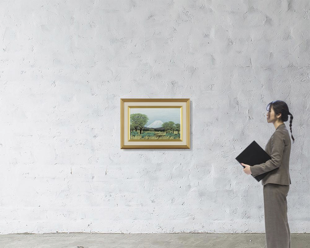 紙本・彩色 38×61cm 落款と印有 共シール 画面数ヶ所に薄いシミ 額付