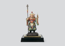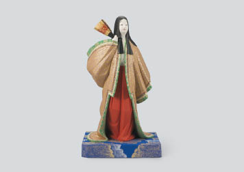 木彫に彩色 H56.3×W32.2×26.6cm 底部に刻銘 作品数ヶ所にコスレ、ヒビ、小さな剥落 共箱 共立札 ガラスケース付