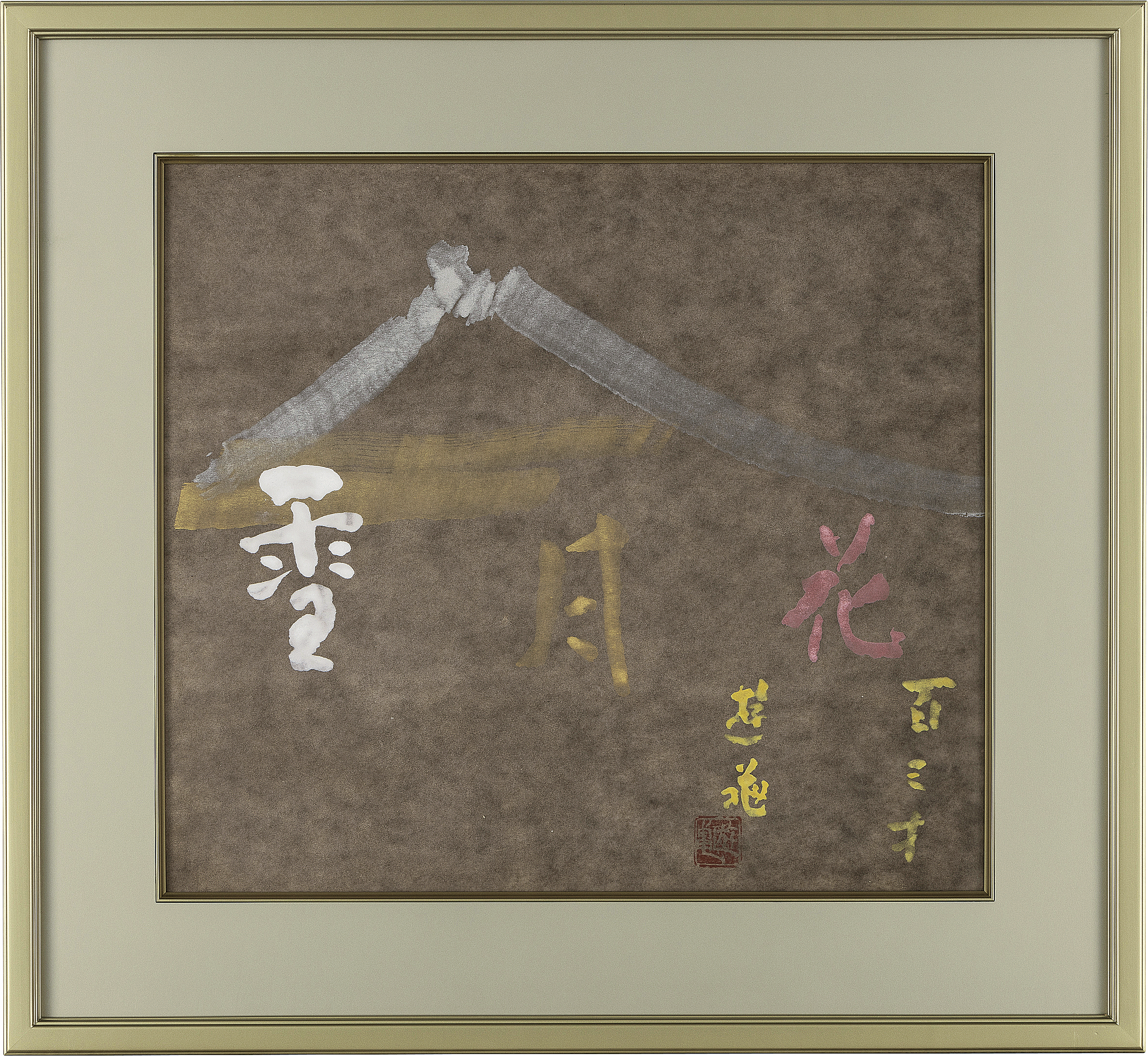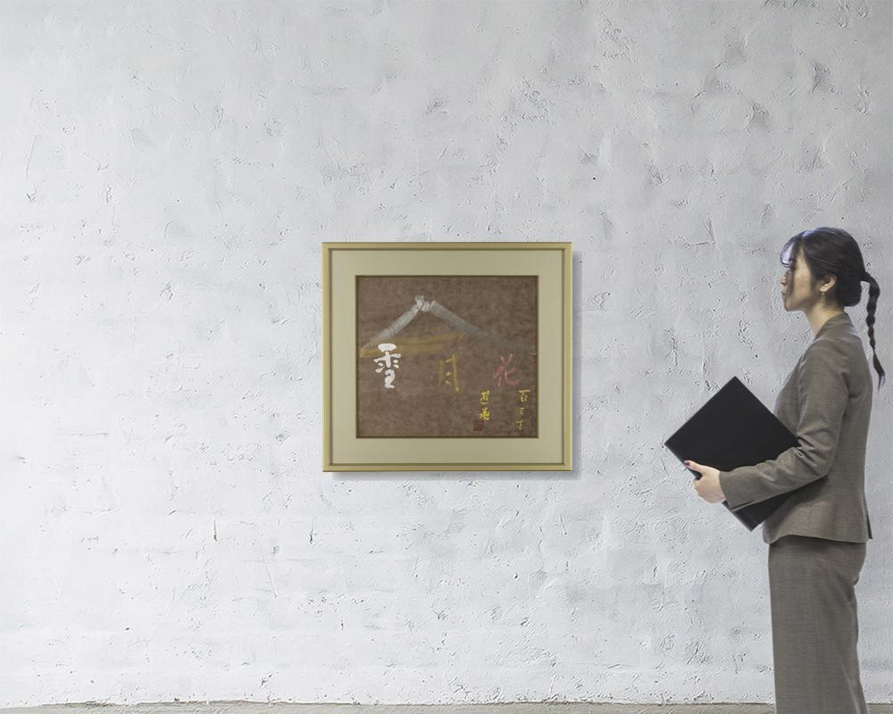 紙本・彩色 50.5×57cm 落款と印有 鑑定シール 画面全体に薄いヤケ 額付