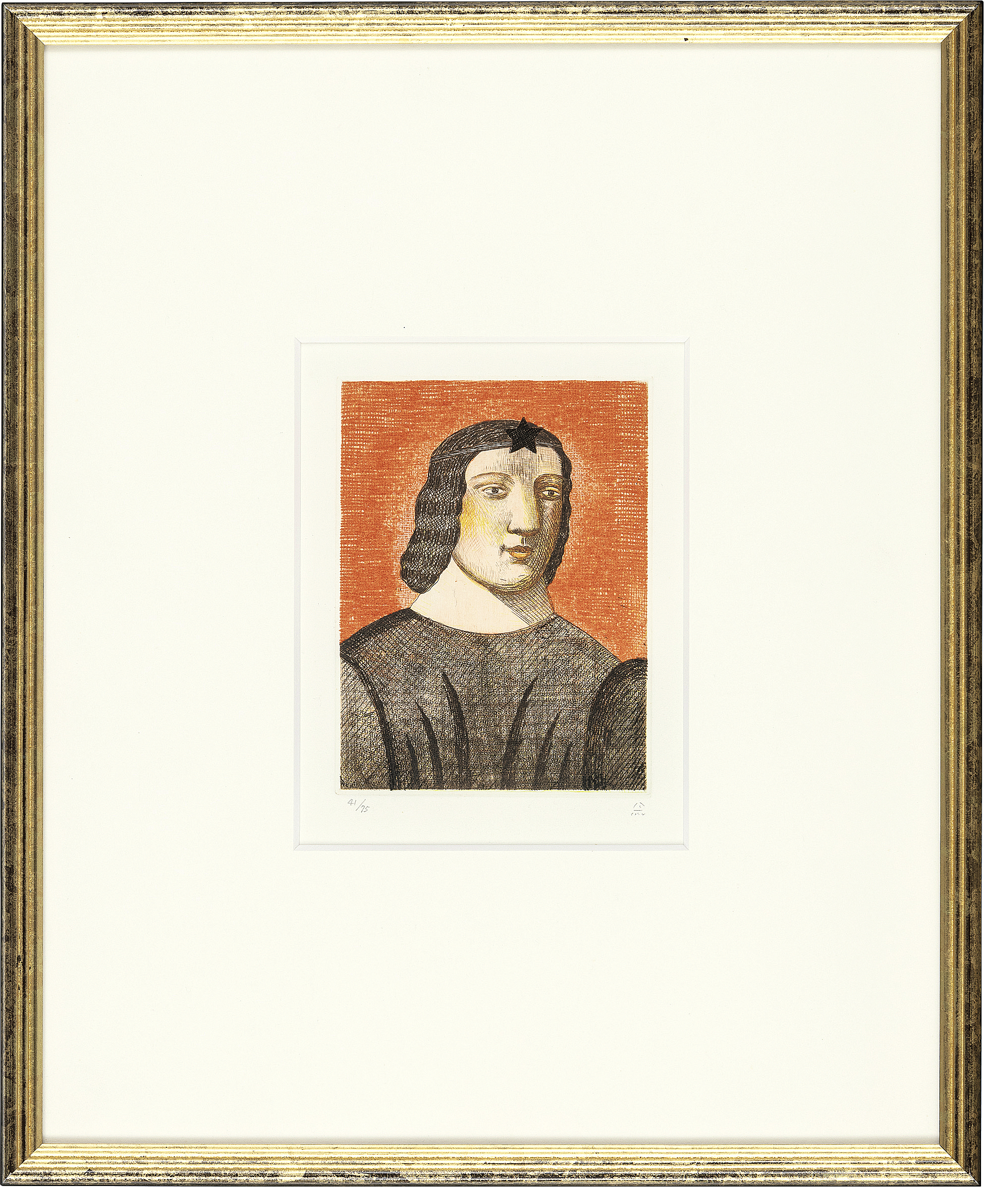 新潮社Print 100 1983年 エッチング 15.5×11.5cm サイン有 ed.75 シートサイズ 36.5×57cm(フルマージン) 折り返しテキストページ付 シート全体に薄いヤケ マージン及び裏面数ヶ所にシミ 額付