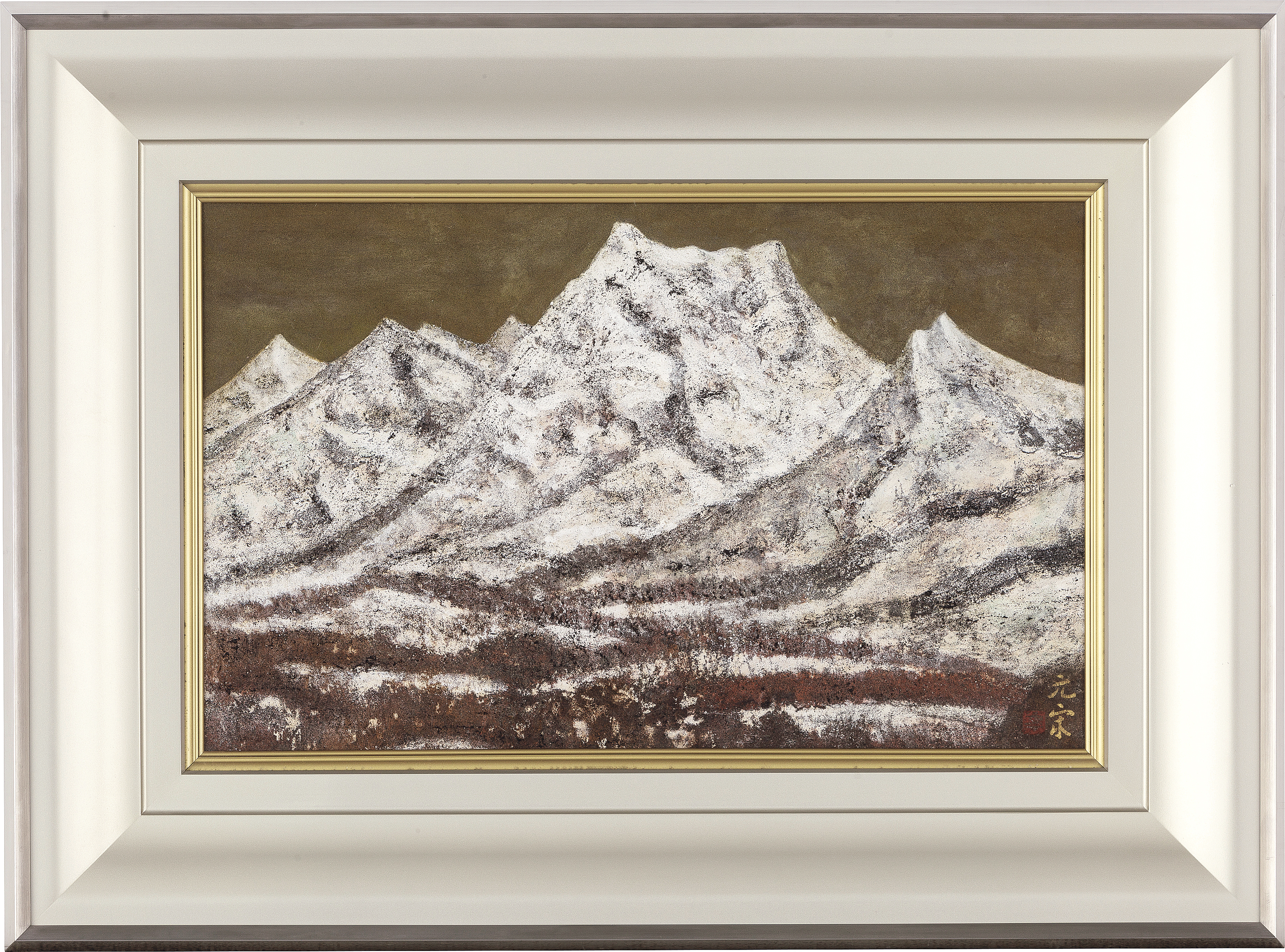 紙本・彩色 30×48cm 落款と印有 画面全体に薄いヤケ 共箱 額付