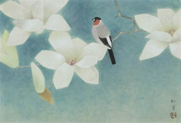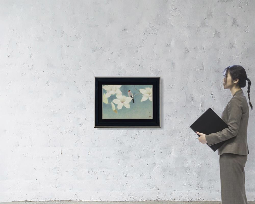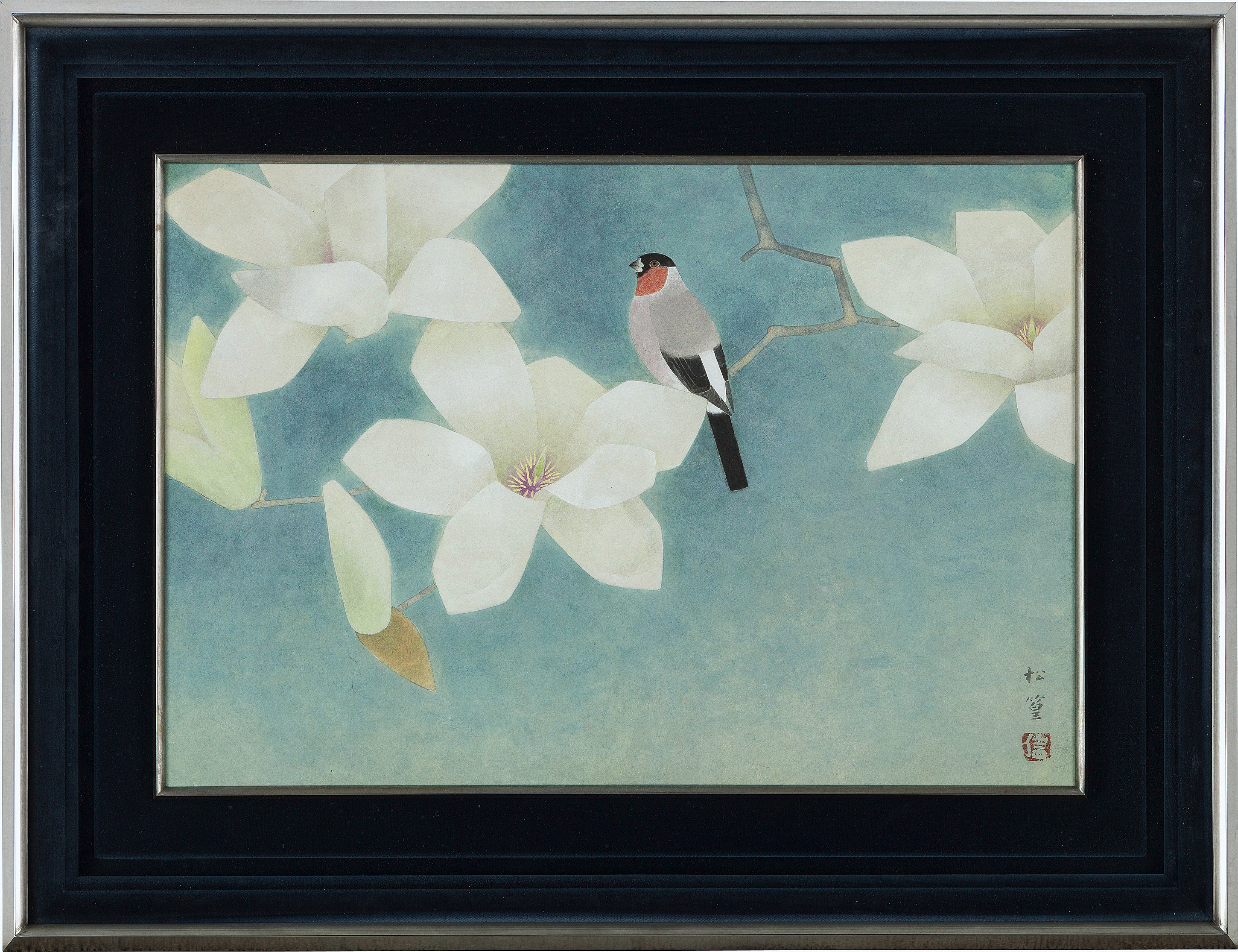紙本・彩色 35.8×52.5(額窓)cm 落款と印有 共シール 作品は額に固定 画面数ヶ所に小さな虫食い、補彩 額付*