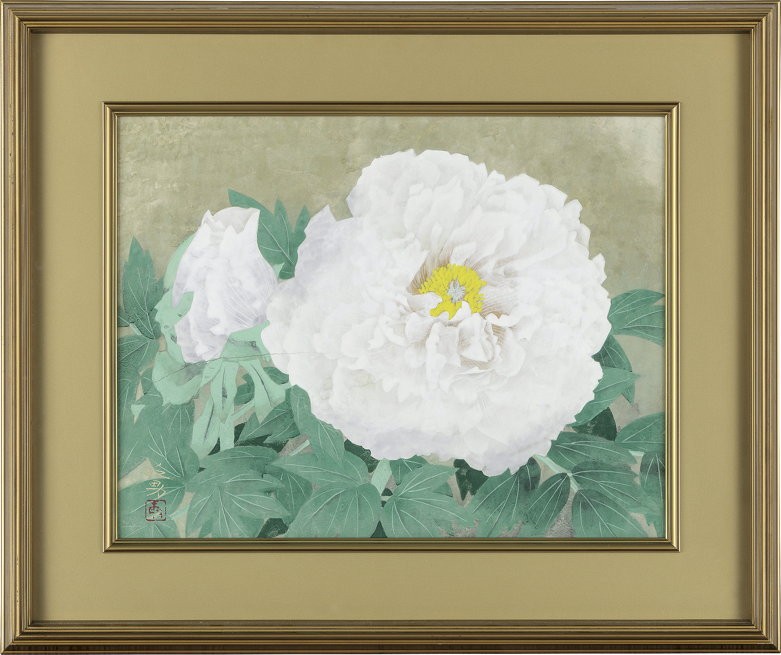 紙本・彩色 10号 落款と印有 共シール 画面2ヶ所にヤブレ 額付