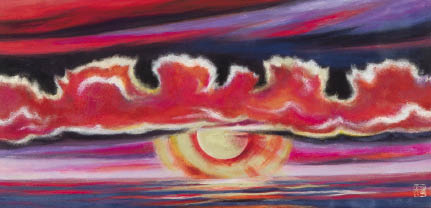 紙本・彩色 41.8×85.6cm 印有 共シール 額付