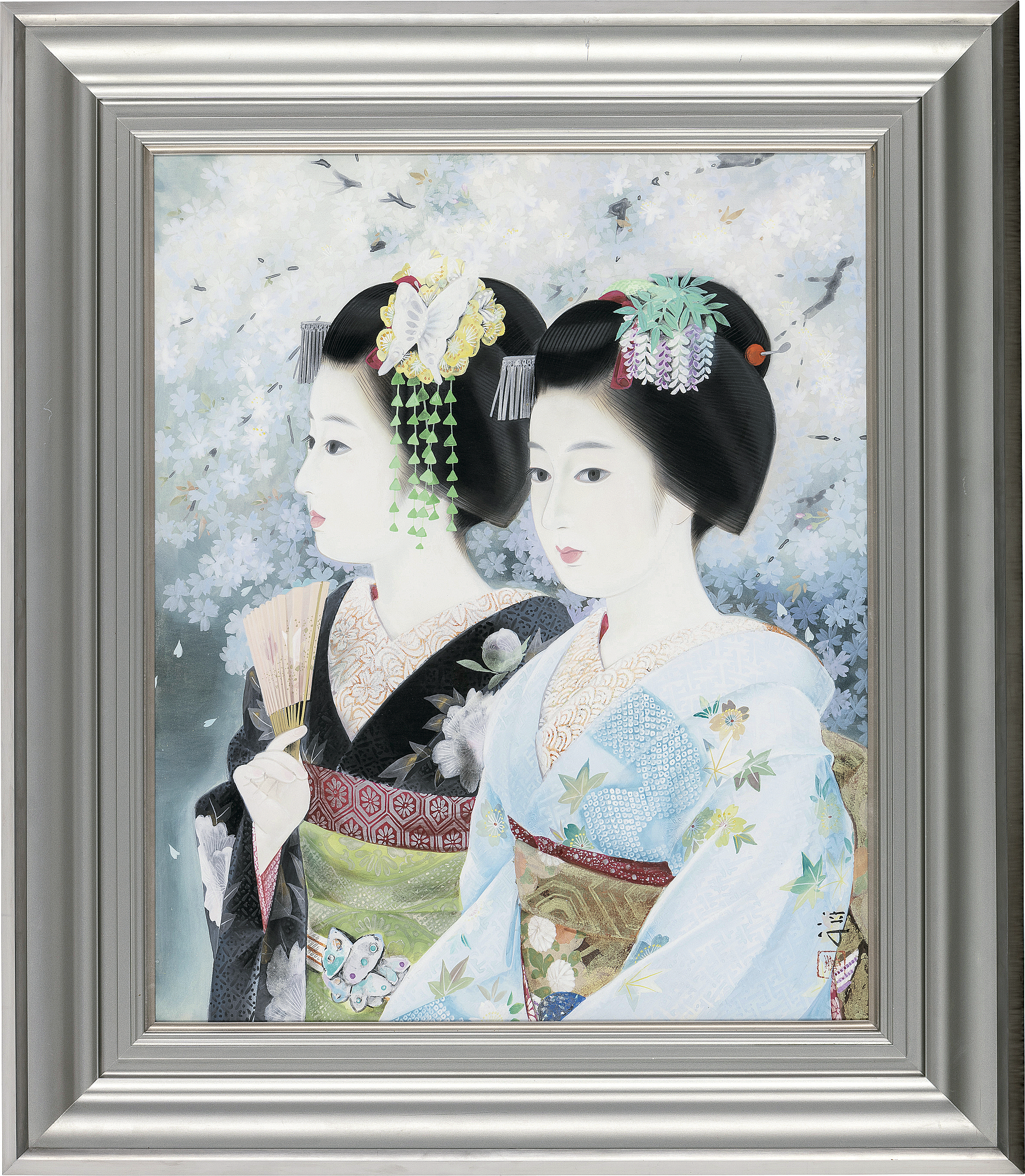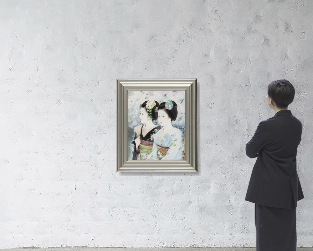 紙本・彩色 12号 落款と印有 共シール 額付