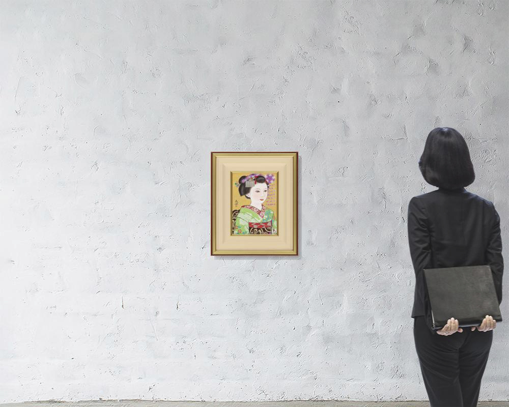 紙本・彩色 4号 落款と印有 共シール 額付