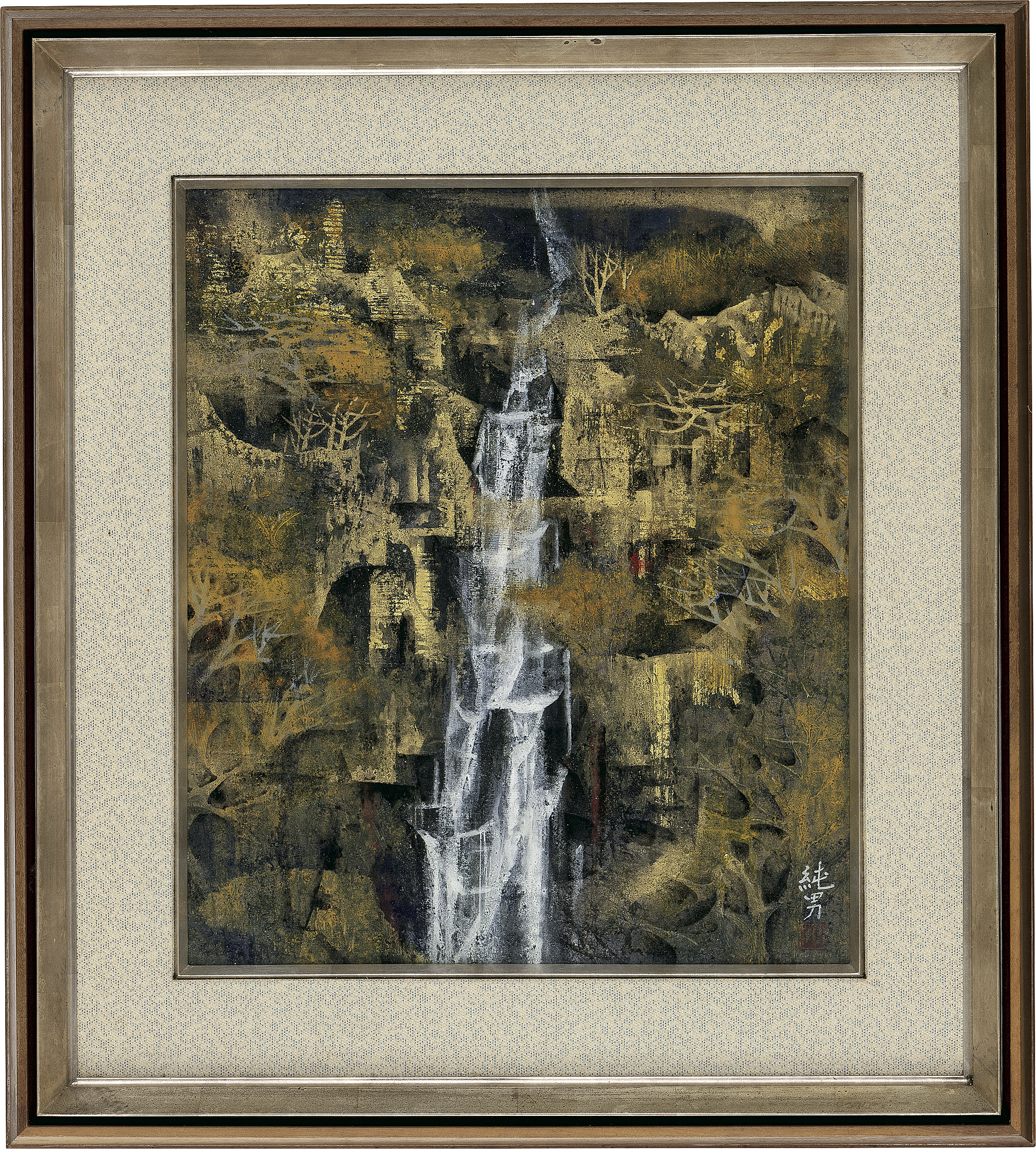 紙本・彩色 10号 落款と印有 共シール 画面数ヶ所に剥落 額付