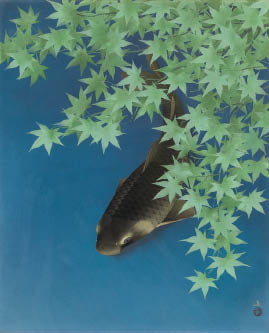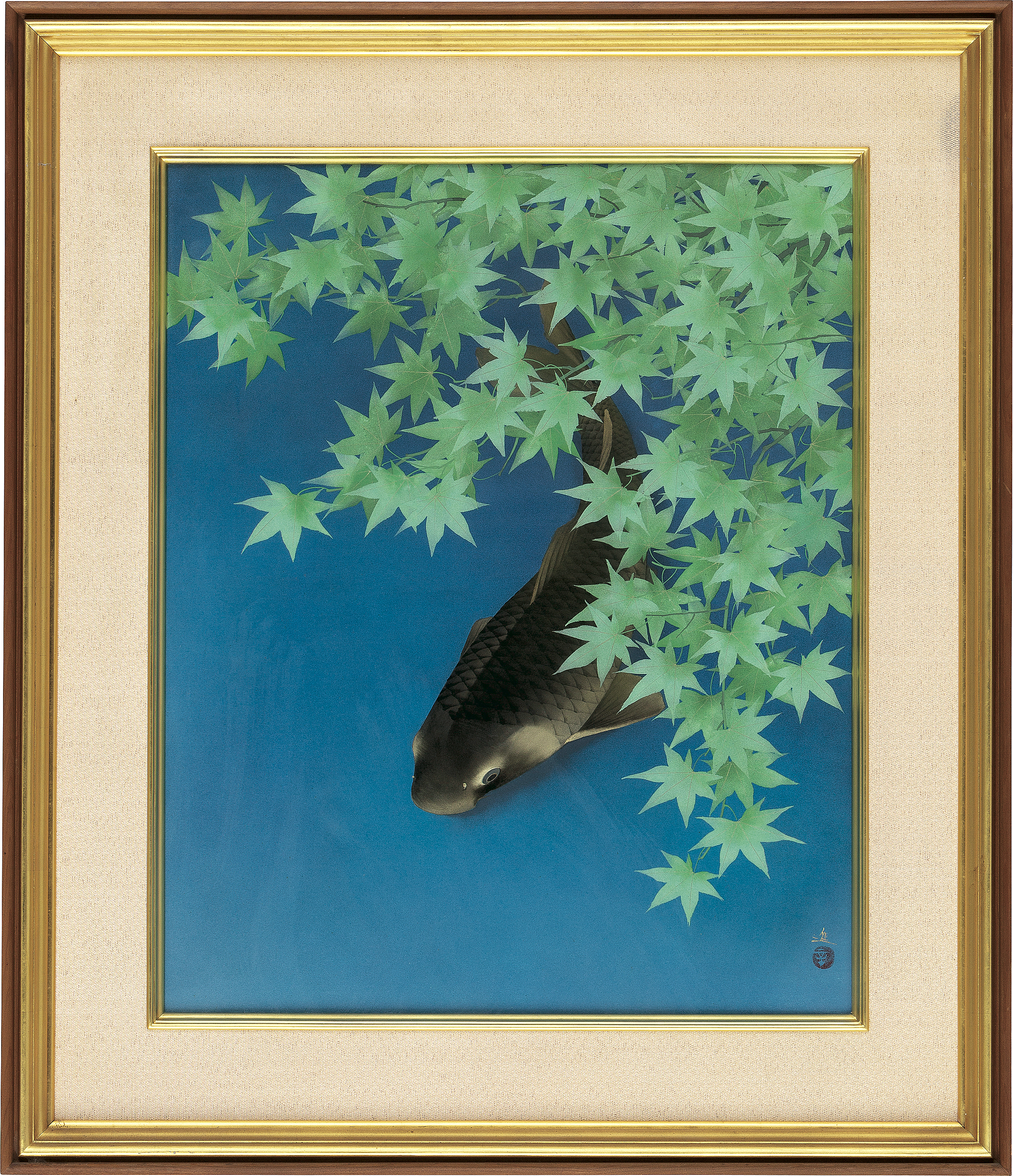 紙本・彩色 15号 落款と印有 共シール 画面数ヶ所に小さなシミ 額付