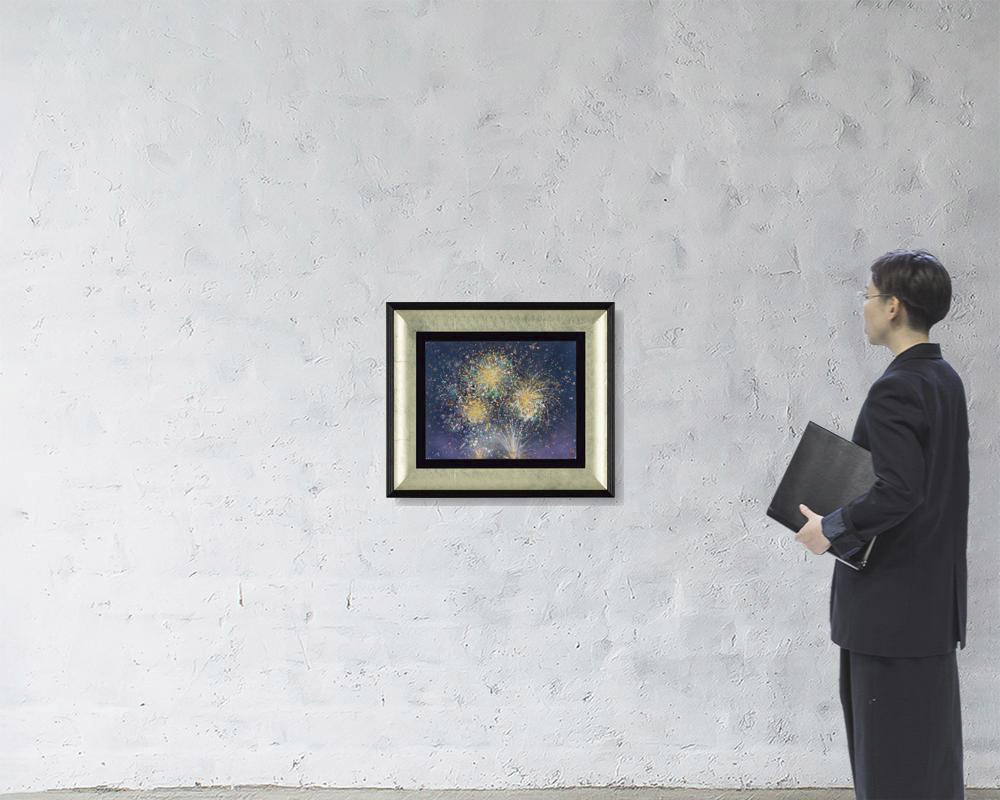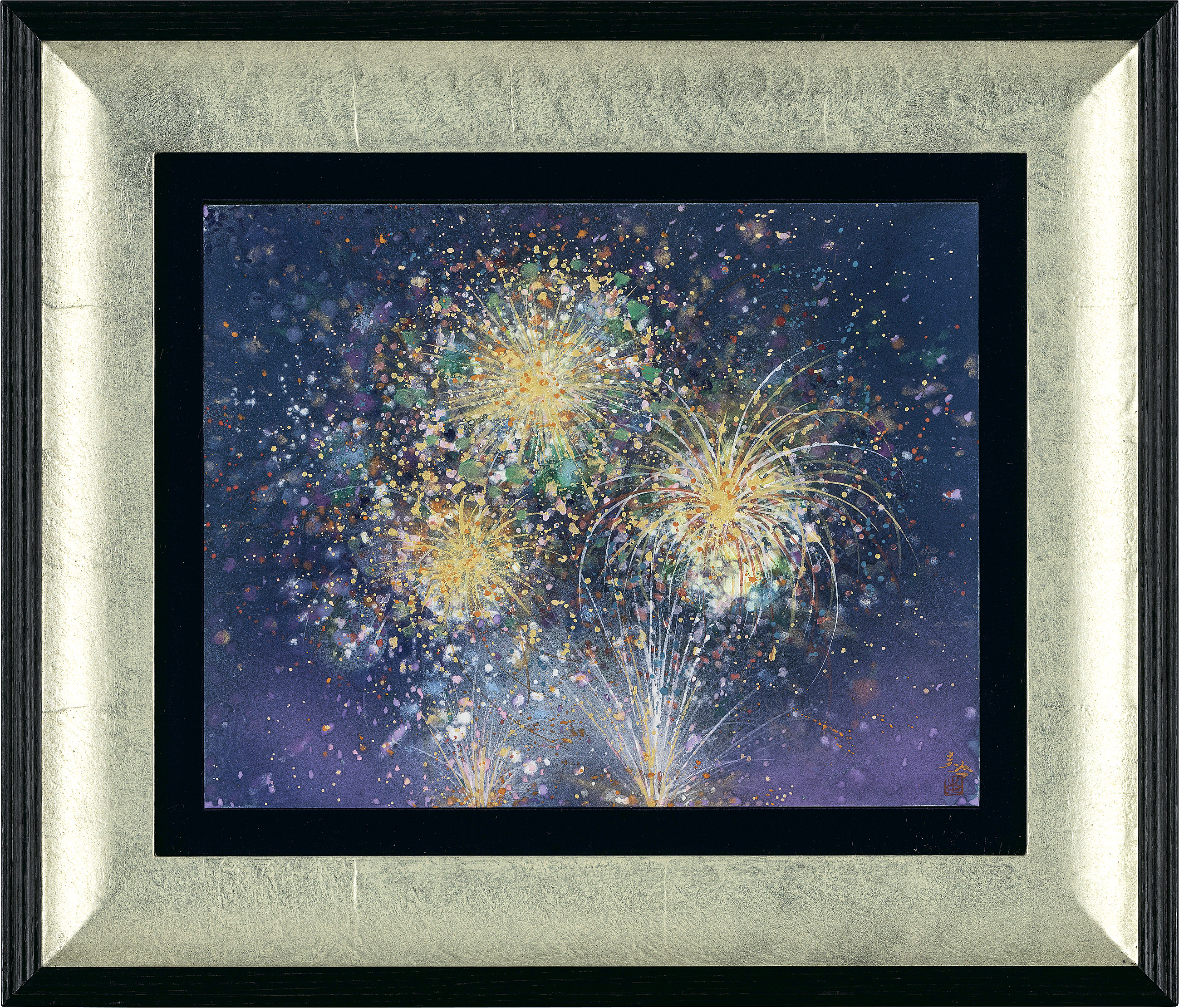 紙本・彩色 6号 落款と印有 共シール 作品はパネルに固定 額付