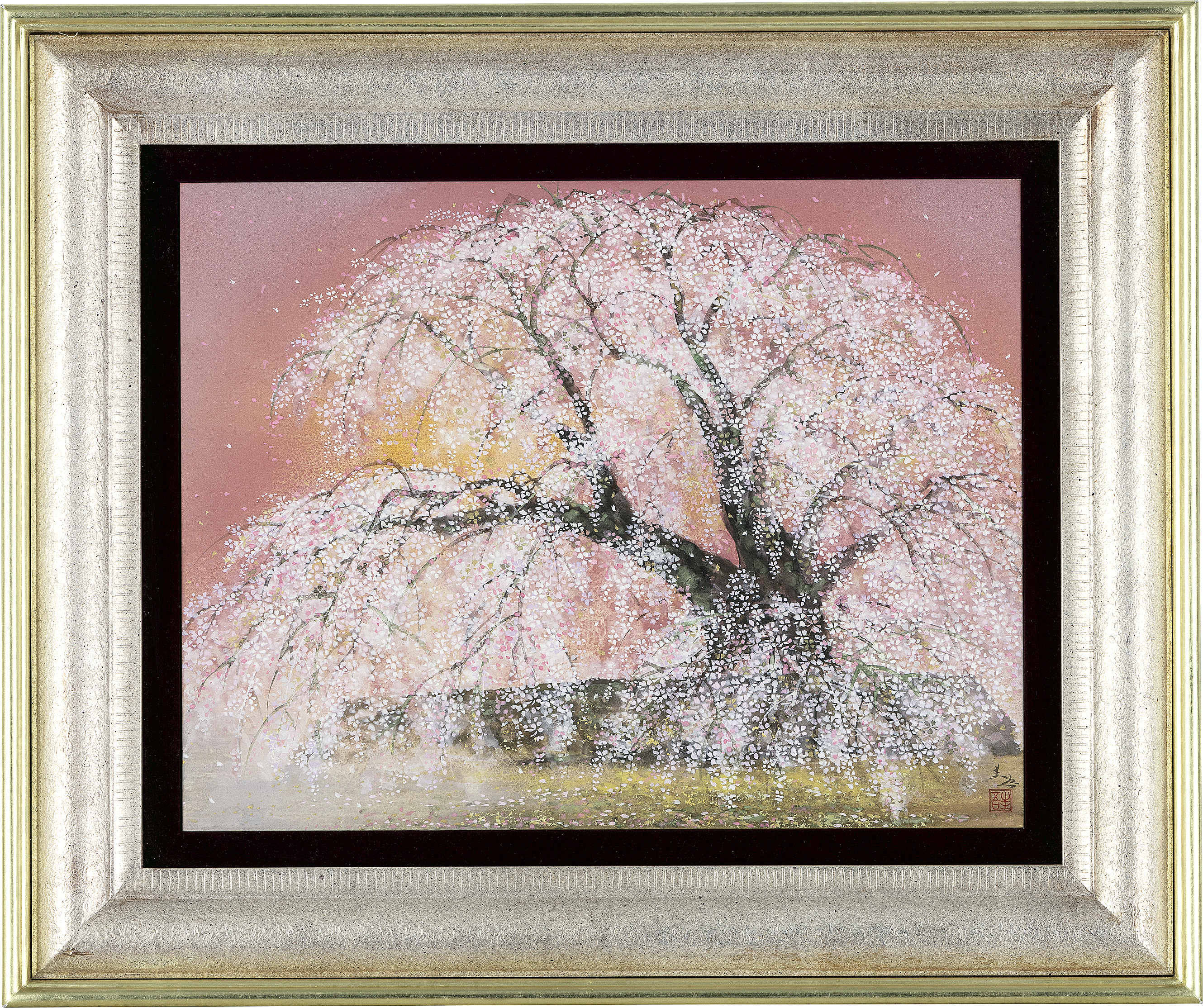 紙本・彩色 10号 落款と印有 共シール 画面数ヶ所に小さなヒビ、小さな剥落 額付