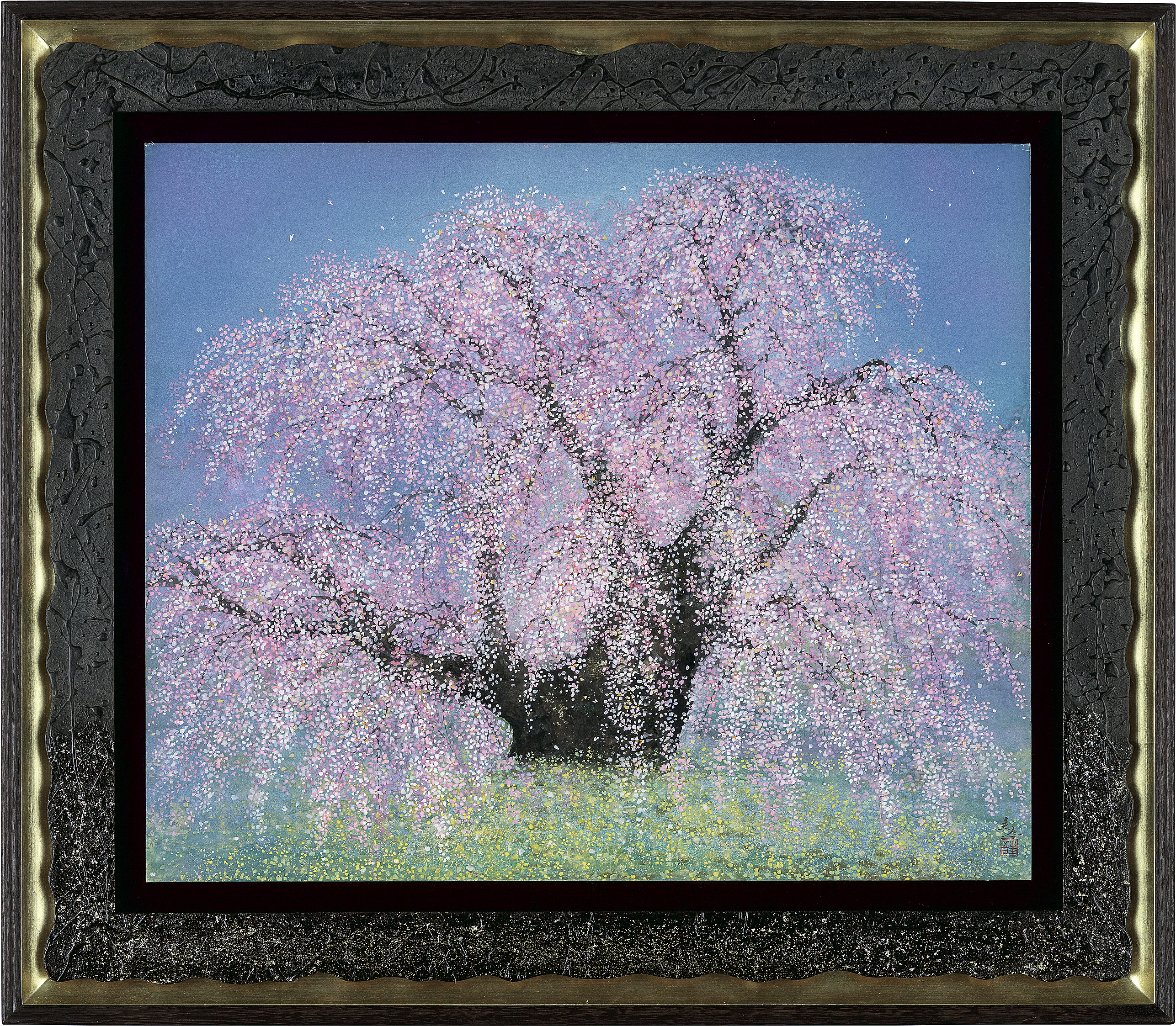 紙本・彩色 60.7×72.8cm(20号) 落款と印有 共シール 画面数ヶ所に剥落、縁沿い数ヶ所にコスレ 額付