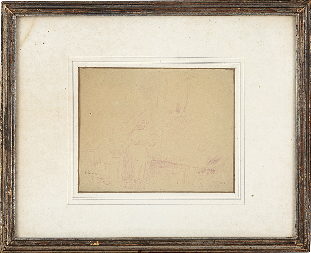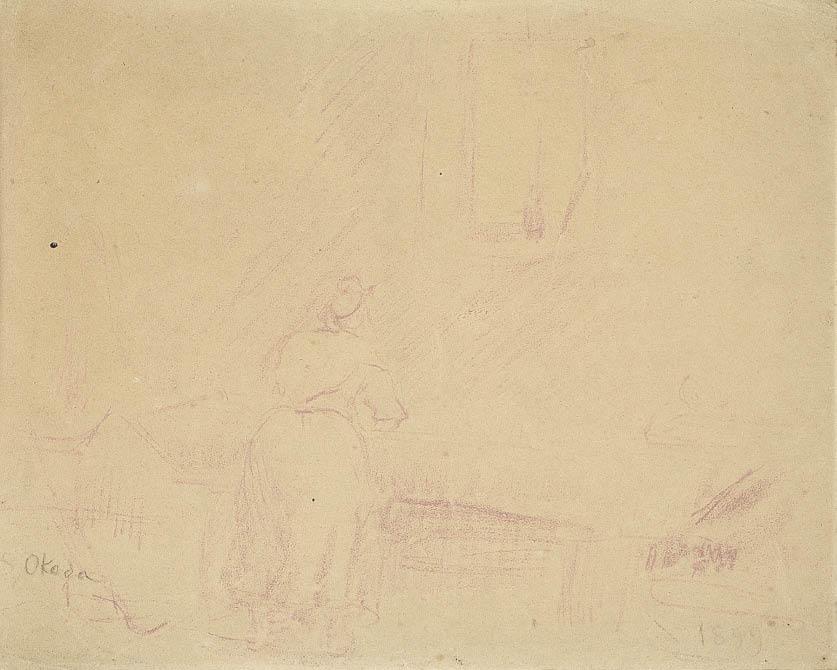 1899年 紙にコンテ 20.2×26.5(紙)cm サイン有 スケッチブックに描かれた作品 作品は裏面数ヶ所を台紙に貼付 画面全体にヤケ、数ヶ所にシミ、シワ、ヨゴレ、ピンホール 額付