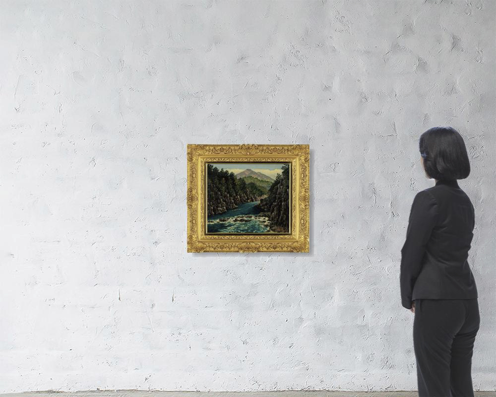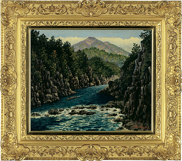 キャンバスに油彩 F8号 サイン有 キャンバス裏木枠にもサインと印、タイトル 額付