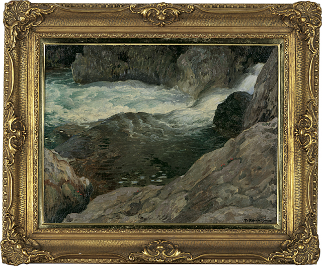 キャンバスに油彩 P10号 サイン有 キャンバス裏木枠にもサインと印、タイトル 画面数ヶ所に点状のシミ、隅1ヶ所にピンホール 額付