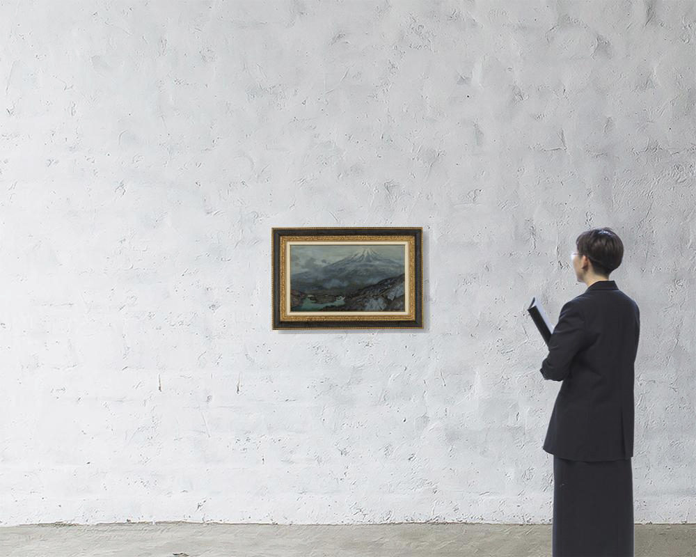 キャンバスに油彩 35.8×62cm サイン有 キャンバス裏木枠にもサインと印、タイトル 画面所々に浅いヒビ 額付