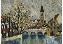 キャンバスに油彩 仏P15号 サイン有 キャンバス裏木枠にもサインと印、タイトル 画面縁沿い2ヶ所に小さな剥落、隅2ヶ所にピンホール 額付
