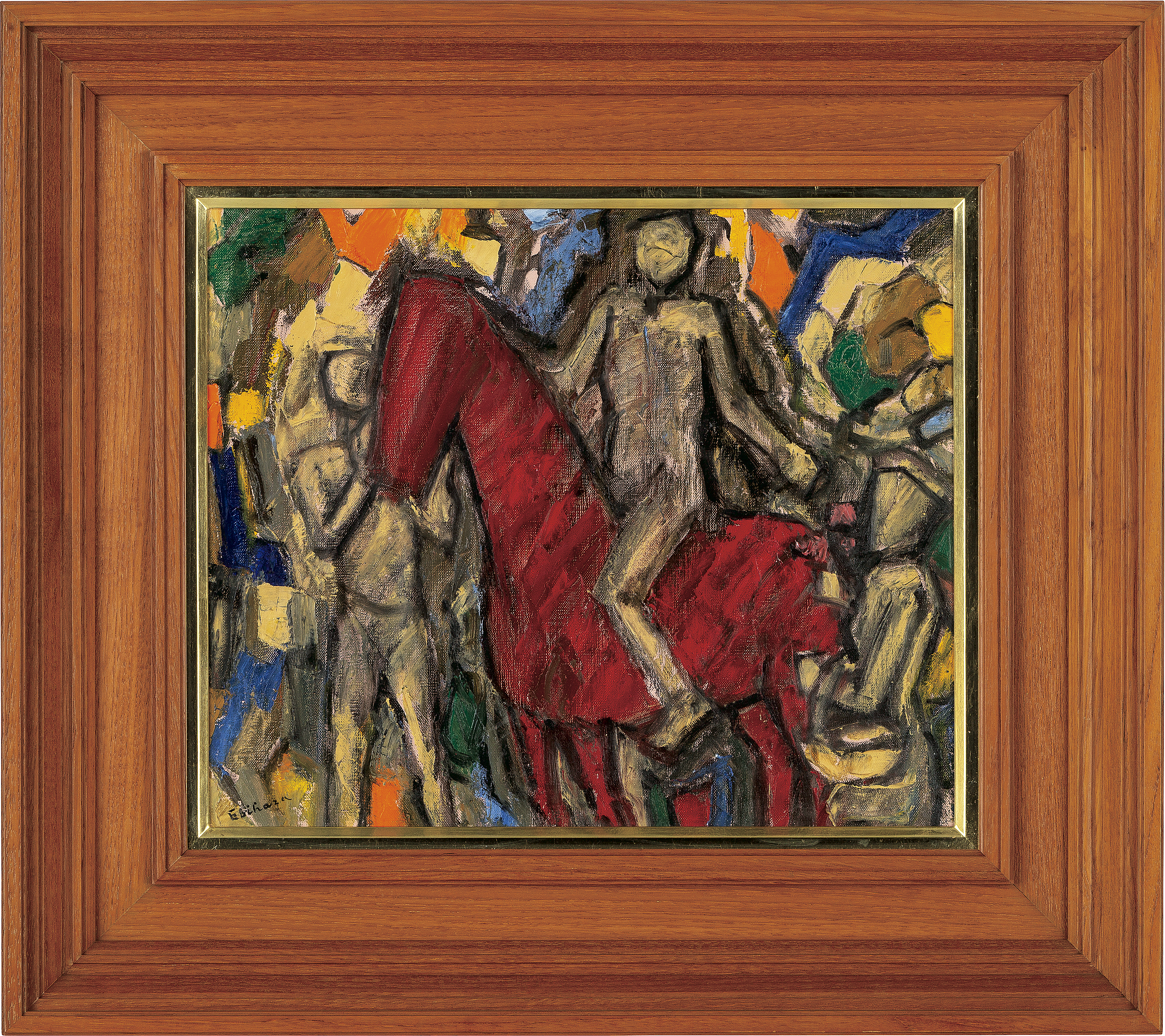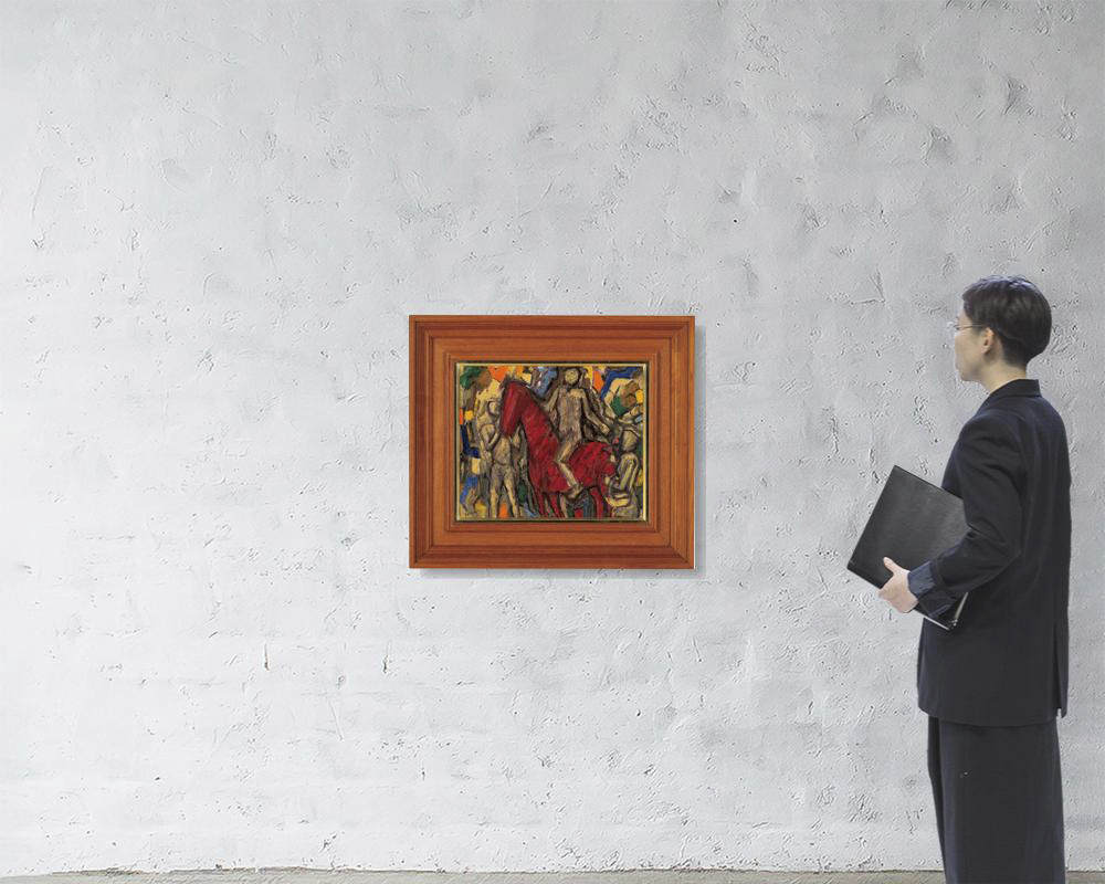 キャンバスに油彩 38.2×45.5cm(F8号) サイン有 キャンバス裏木枠にもサイン、タイトル 共シール 画面数ヶ所に絵具の縮み 額付