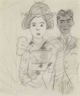 紙に鉛筆 22.3×18.7(紙)cm 画面全体に薄いヤケ、所々にシワ、ヤブレ、数ヶ所にシミ 額無