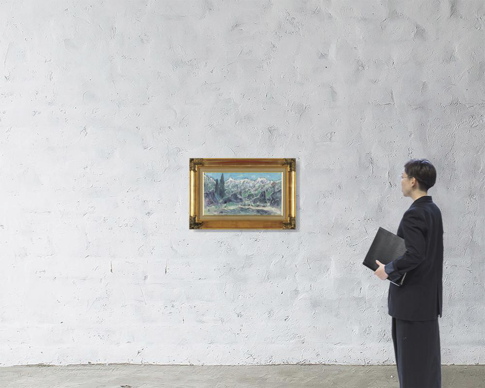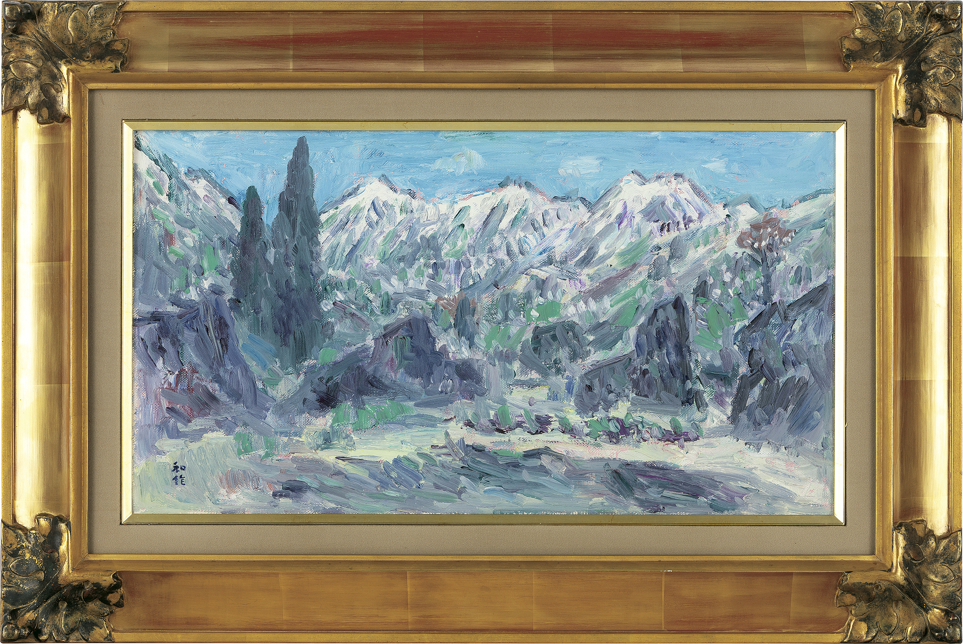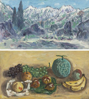 キャンバスに油彩 33×60.5cm サイン有 キャンバス裏にもサイン、タイトル 画面数ヶ所に絵具の縮み もう1点は【果物】(33.3×61cm 画面数ヶ所にヒビ、2ヶ所にわずかな絵具の浮き、1ヶ所に剥落 他は表題と同データ) 2点共額付