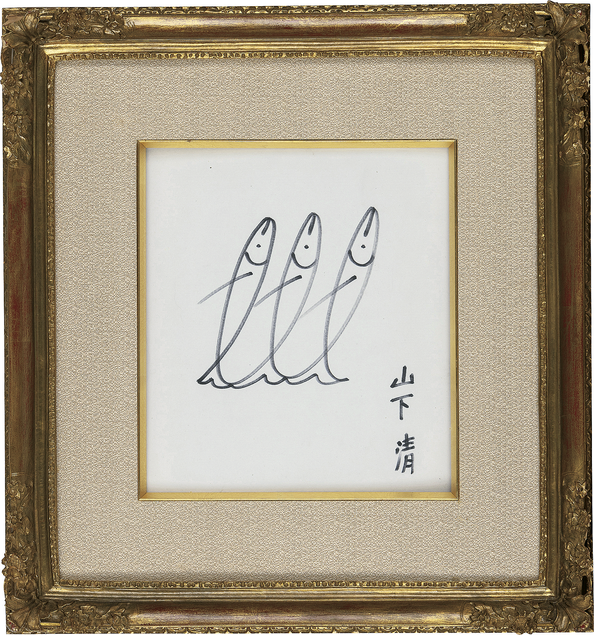 色紙にペン 27.2×24(色紙)cm サイン有 画面全体に薄いヤケ、数ヶ所に薄いシミ、縁沿い2ヶ所にキズ 額付