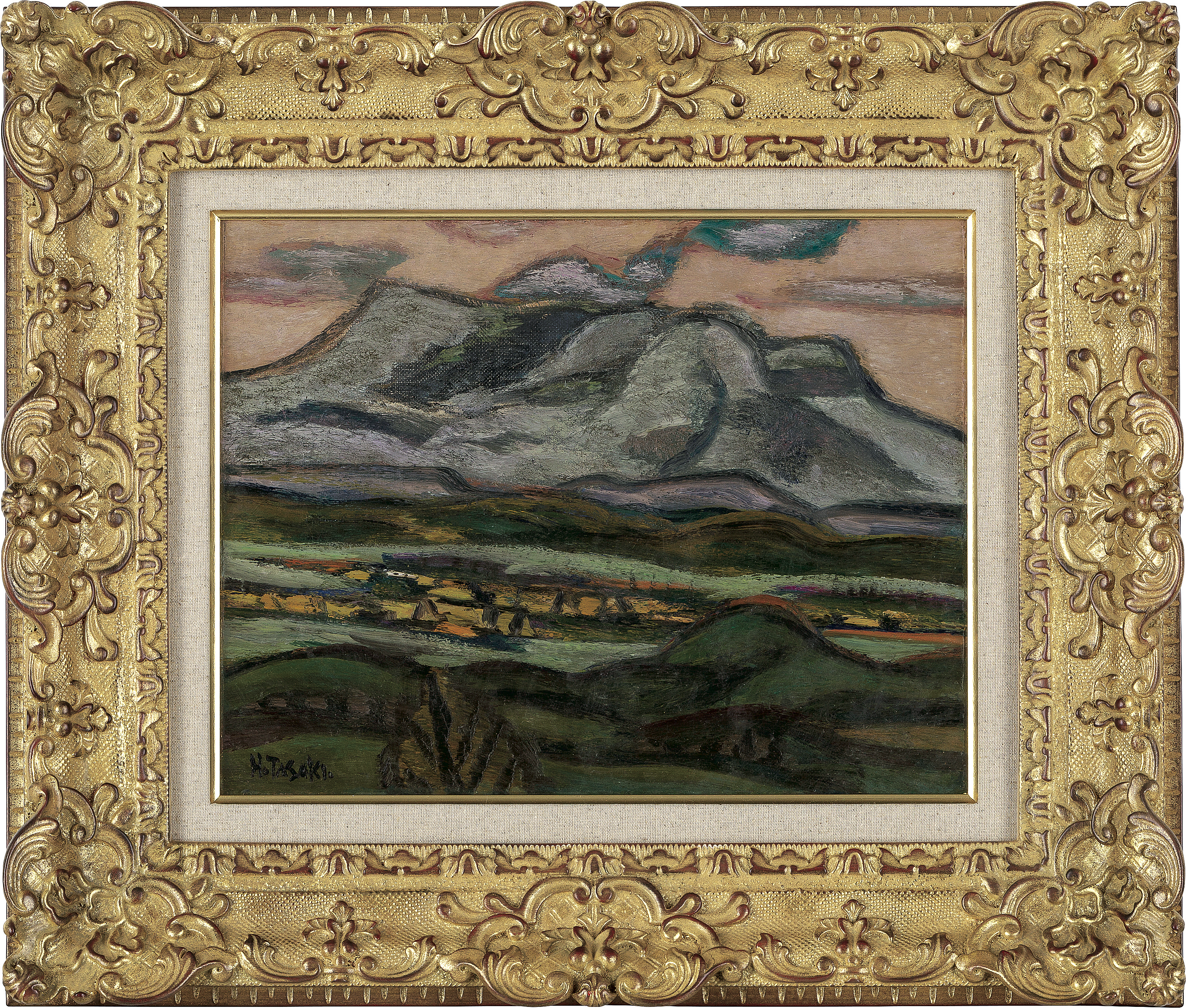キャンバスに油彩 F6号 サイン有 キャンバス裏木枠にもサイン、タイトル 画面数ヶ所にヒビ 額付*