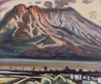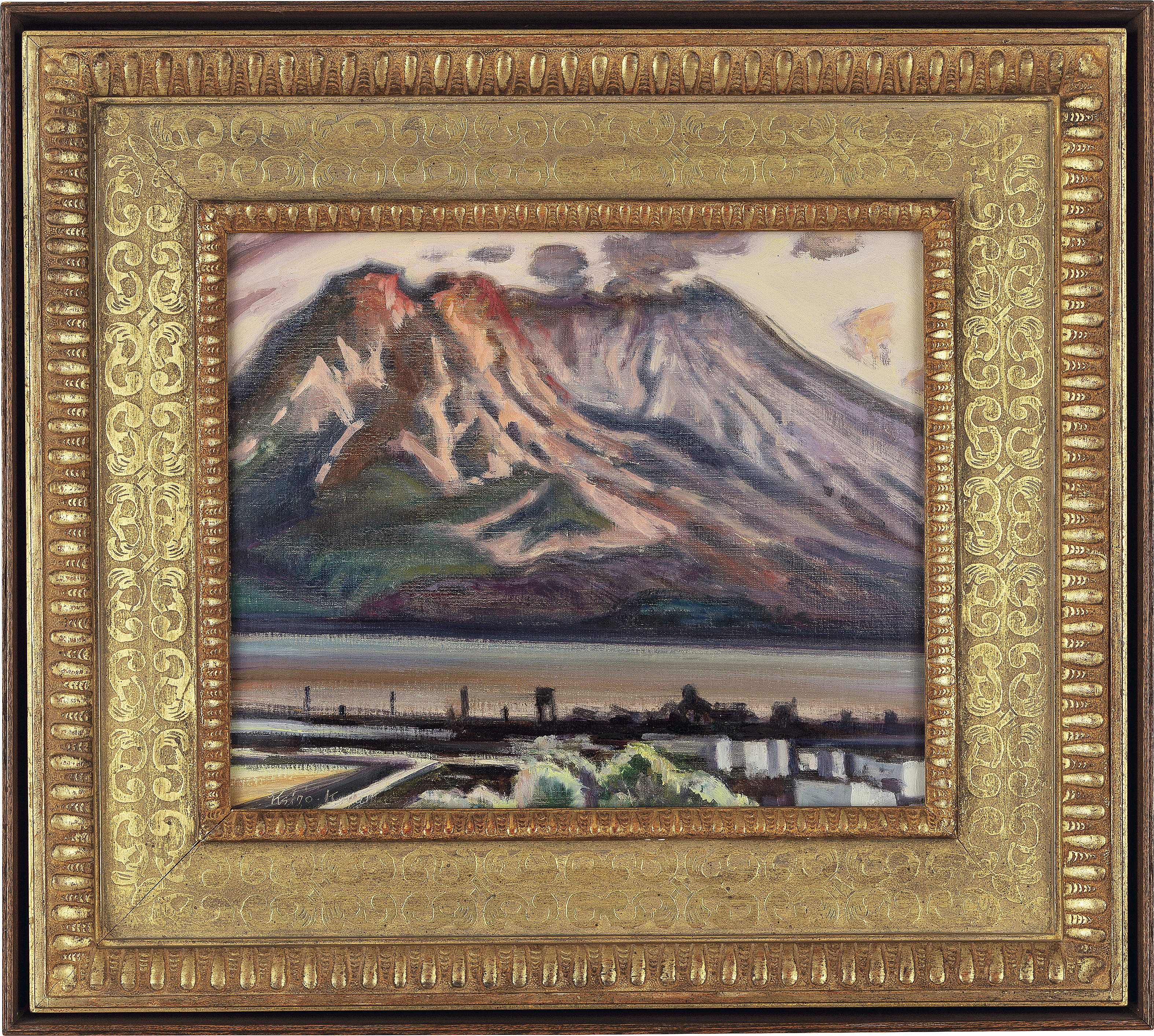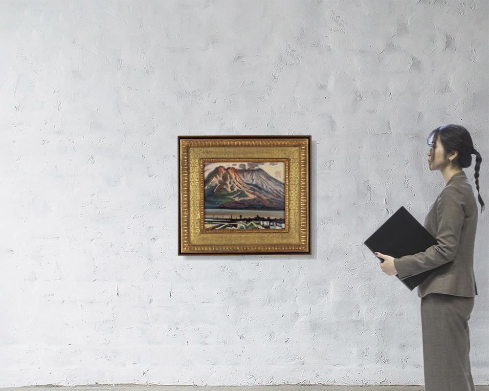 キャンバスに油彩 38.2×45.4cm(F8号) サイン有 キャンバス裏木枠にもサイン、タイトル 画面四隅にピンホール 額付