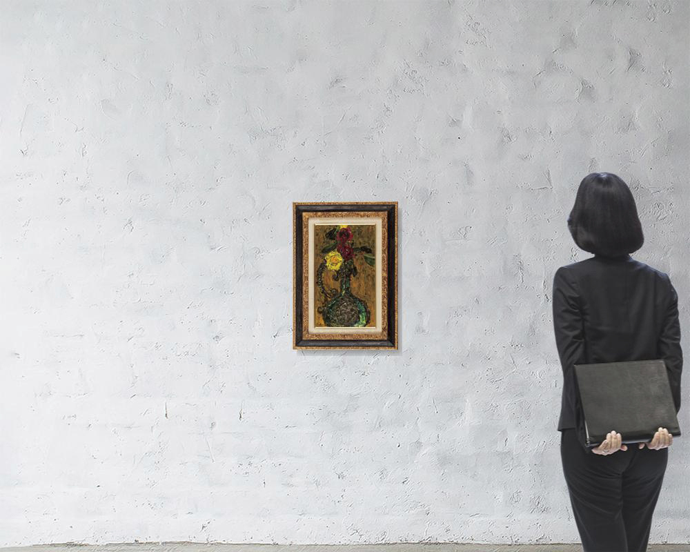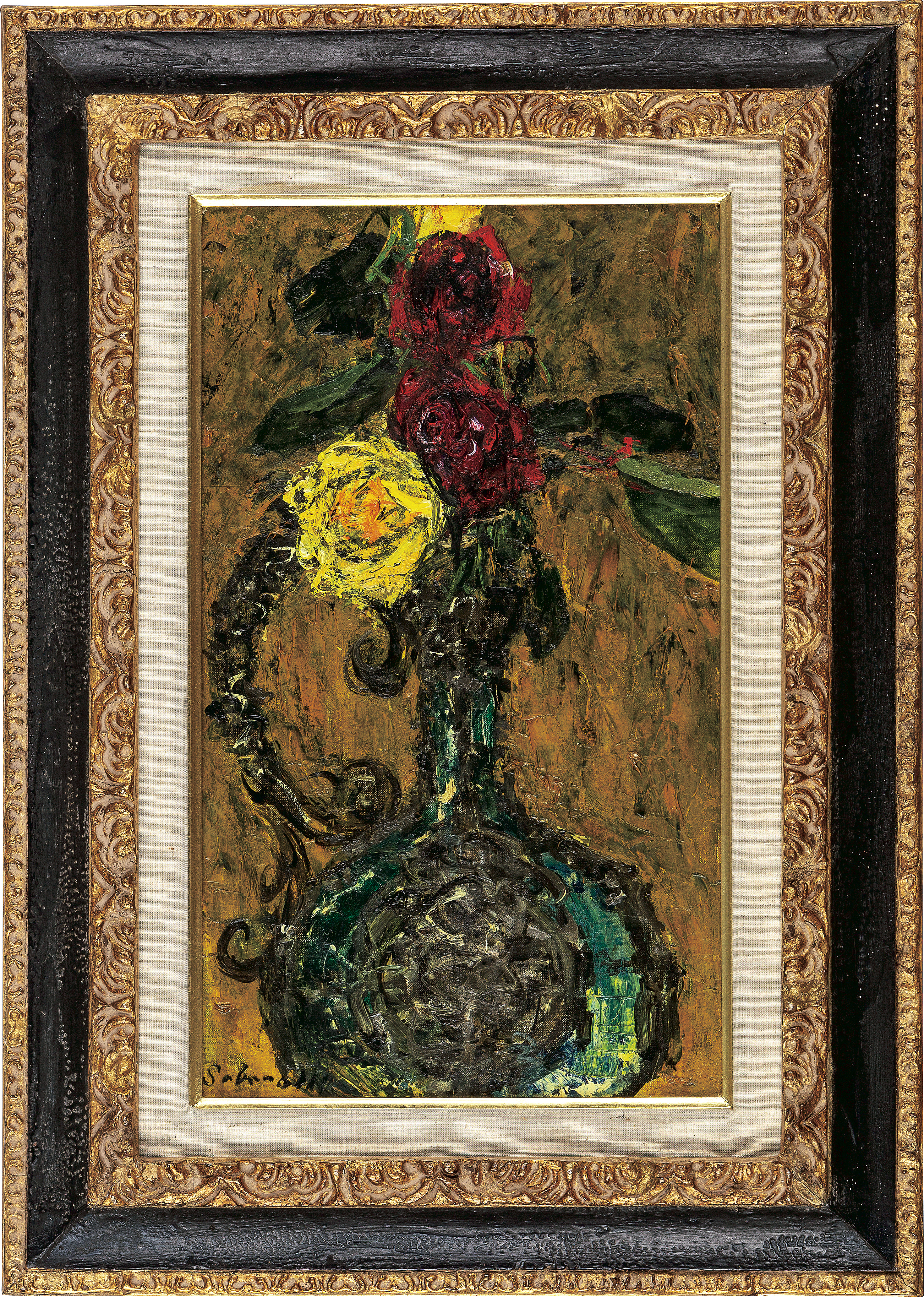 キャンバスに油彩 M6号 サイン有 画面所々にヒビ、四隅にピンホール 額付