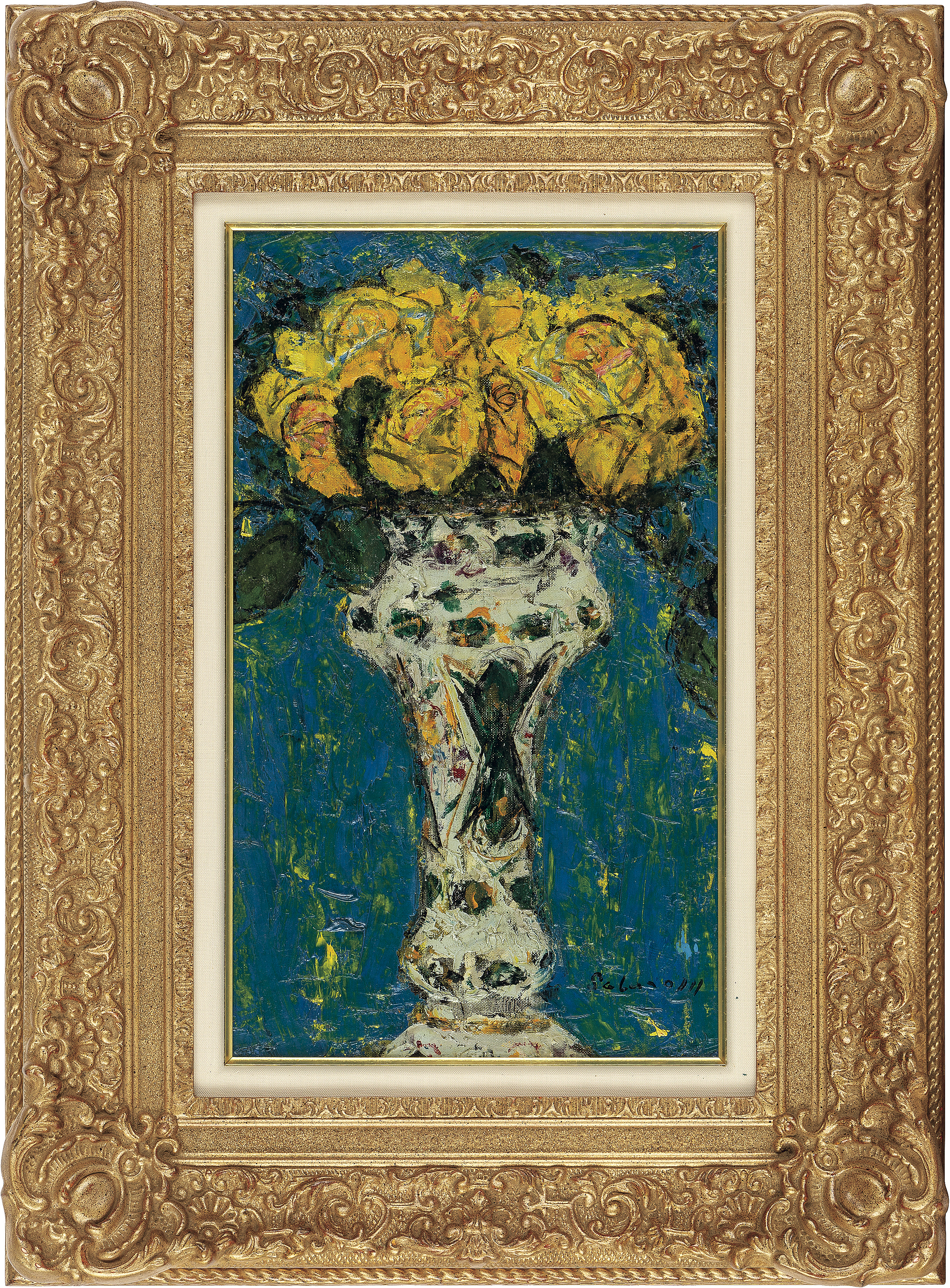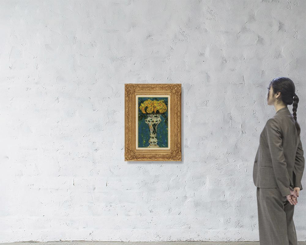 キャンバスに油彩 45.5×27.4cm サイン有 画面数ヶ所にヒビ、2ヶ所に剥落 額付