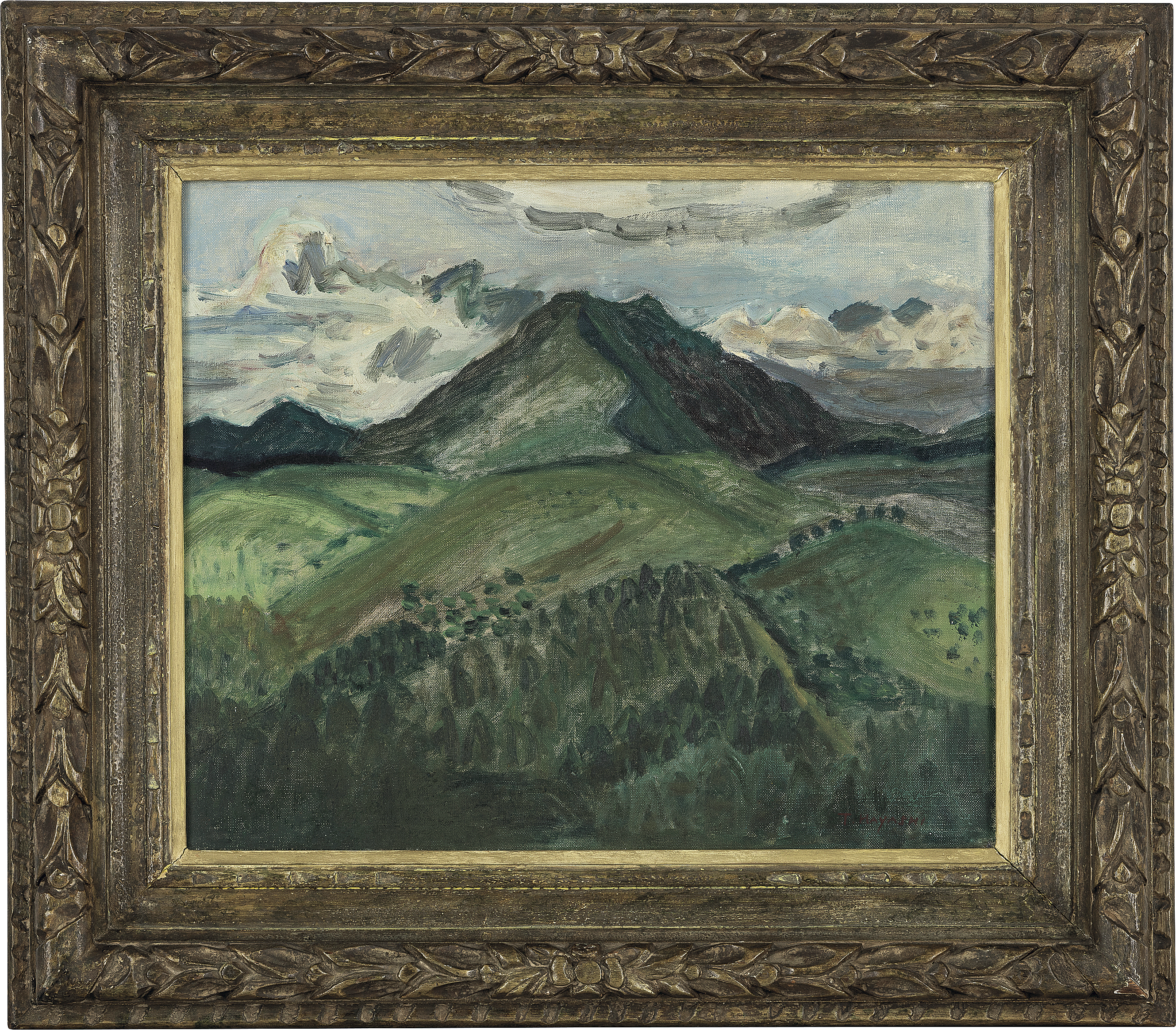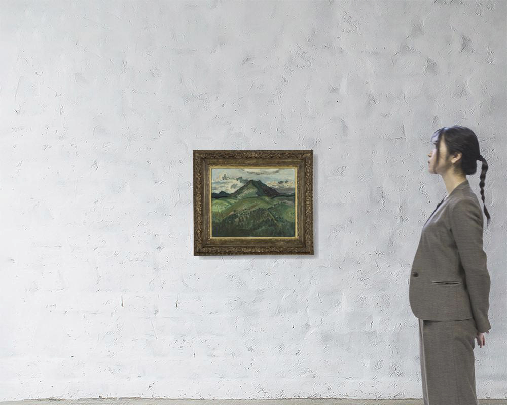 昭和10年(1935年) キャンバスに油彩 F8号 サイン有 キャンバス裏木枠にタイトル、年記 画面数ヶ所に浅いヒビ、小さな剥落 額付