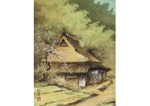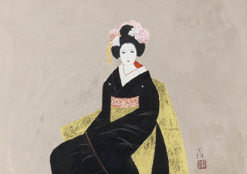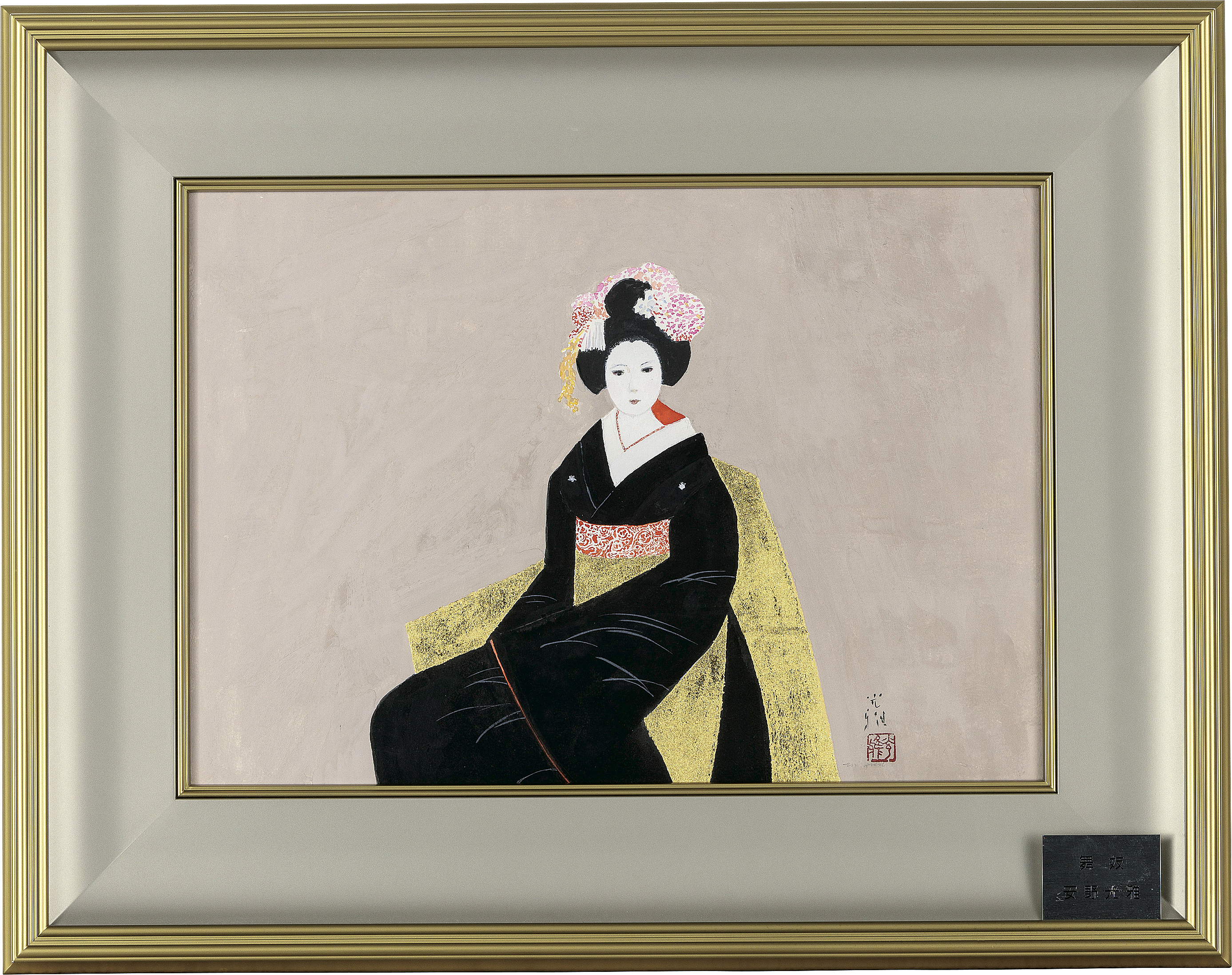2016年 紙にグワッシュ・金箔 36.3×52cm サインと印有 共シール 作品は裏面全体をパネルに貼付 額付