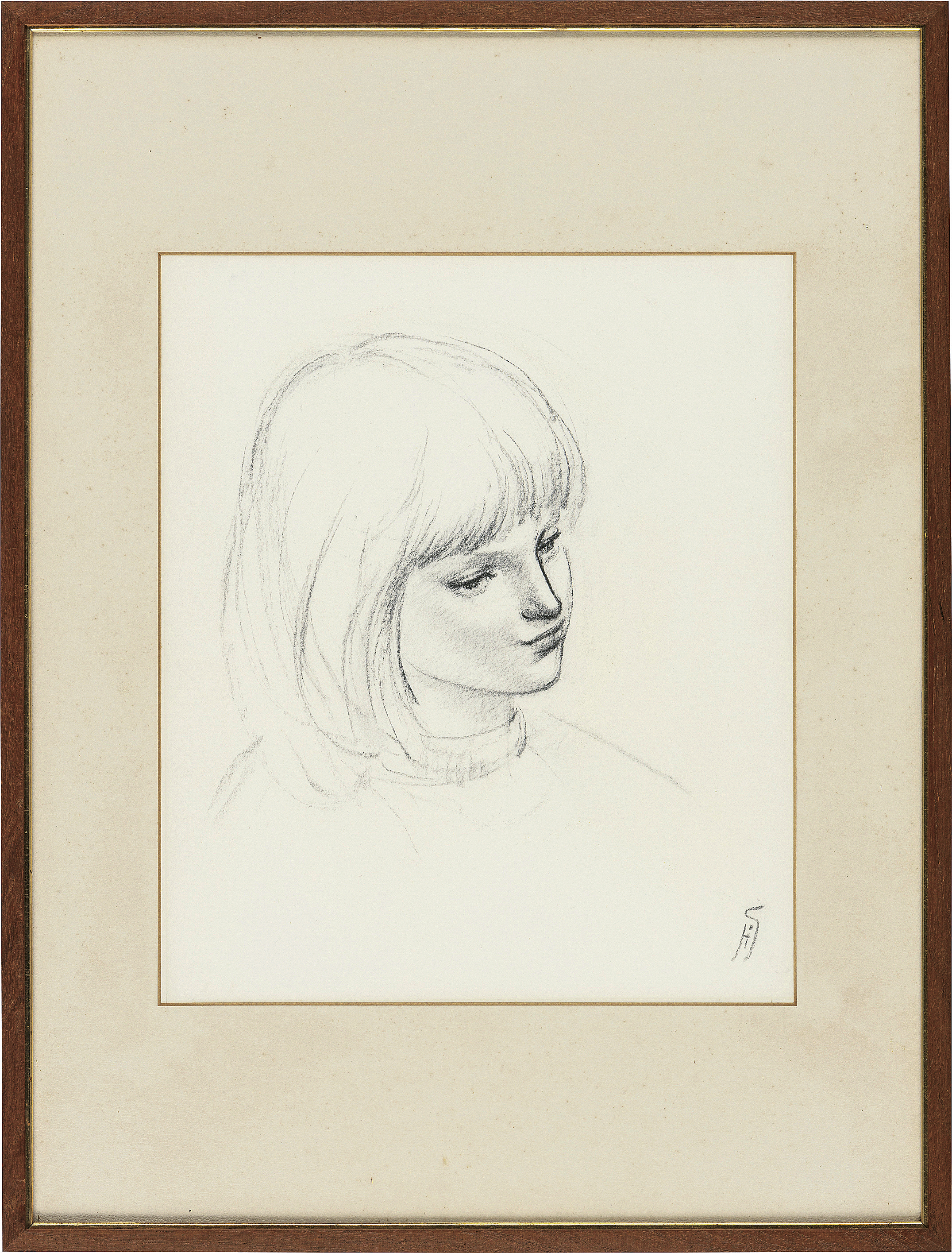 紙に木炭 39×32.8(紙)cm サイン有 画面全体に薄いヤケ、数ヶ所にシミ、隅1ヶ所にピンホール 額付